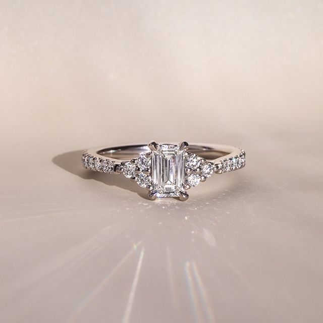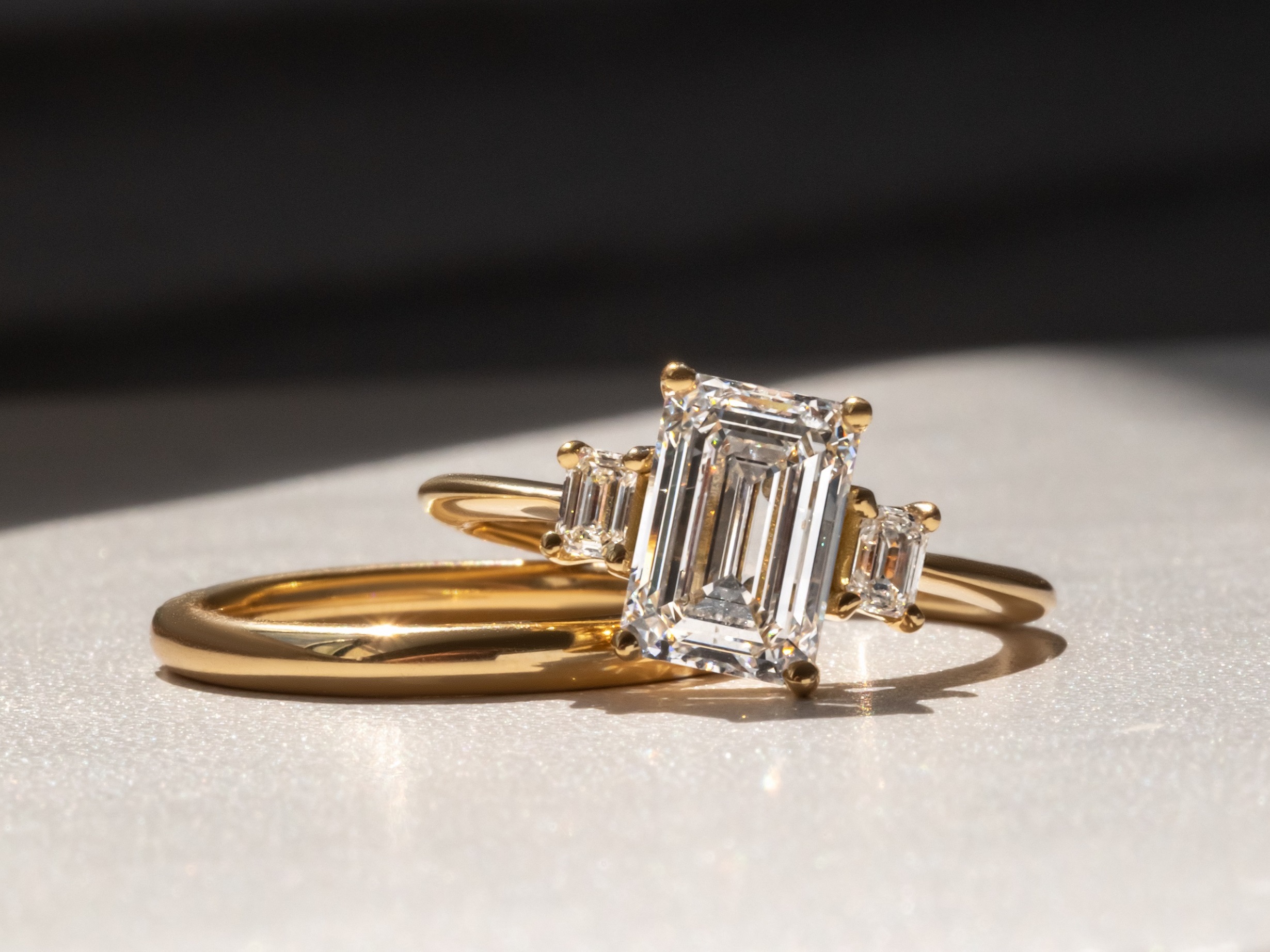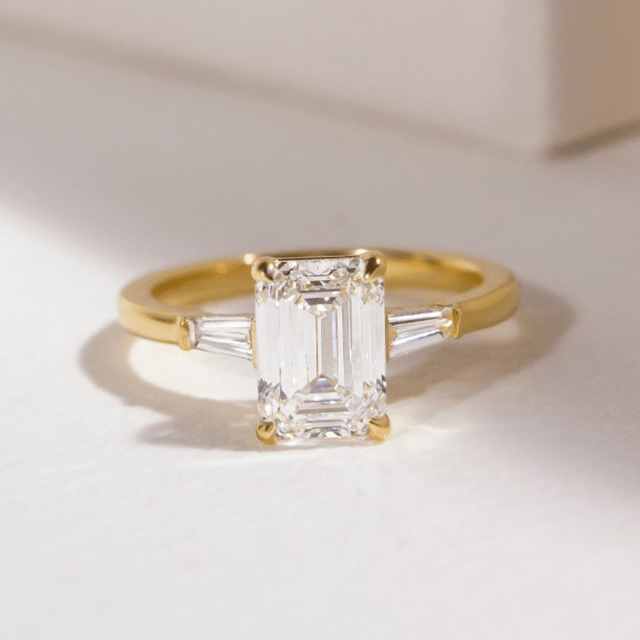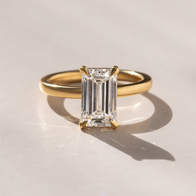 A rectangular diamond ring with an emerald cut shows what’s inside the stone clearly. This makes emerald cut diamond clarity very important. Fewer marks and good balance help the diamond look clean and even, especially when set simply and worn in natural light.