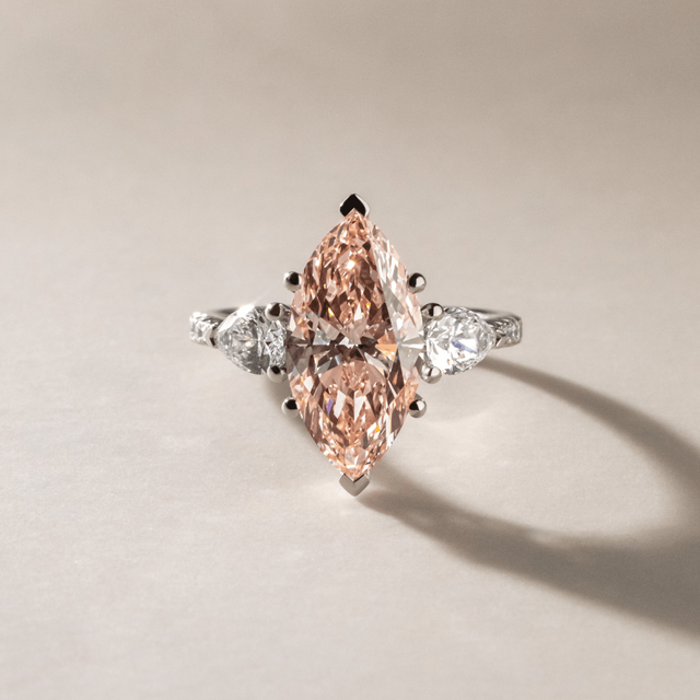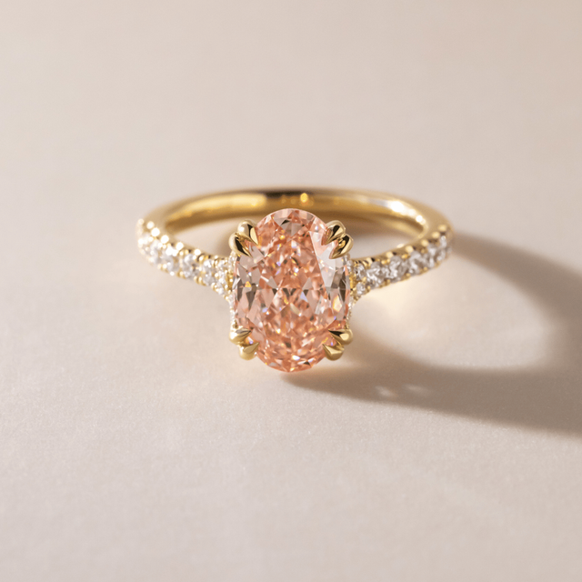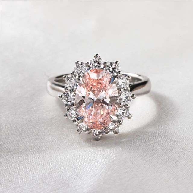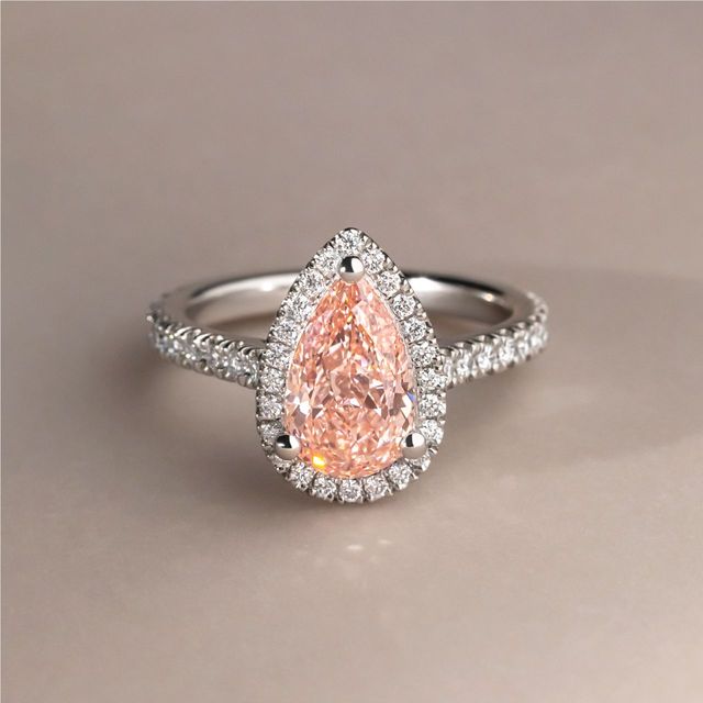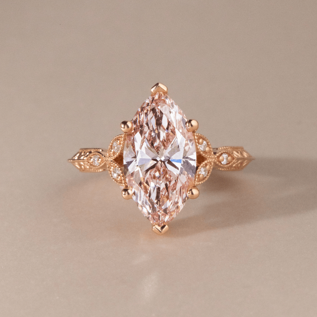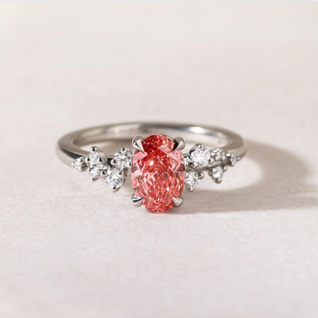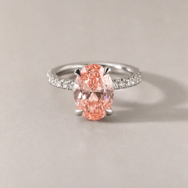 Pink diamonds are graded based on hue, tone, and intensity. Even small differences in shade can significantly impact the overall appearance and value of the ring.
