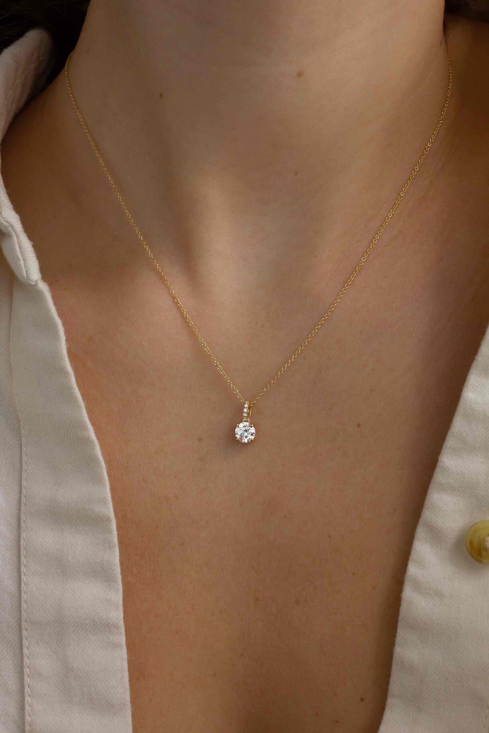 The solitaire diamond pendant is the most popular due to its classic elegance and versatility. Tennis necklaces and halo pendants are also trendy for a more luxurious look.