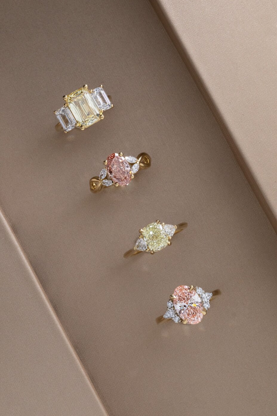 Because of their striking looks and convenient price point, coloured diamonds can be found in many types of jewellery :
