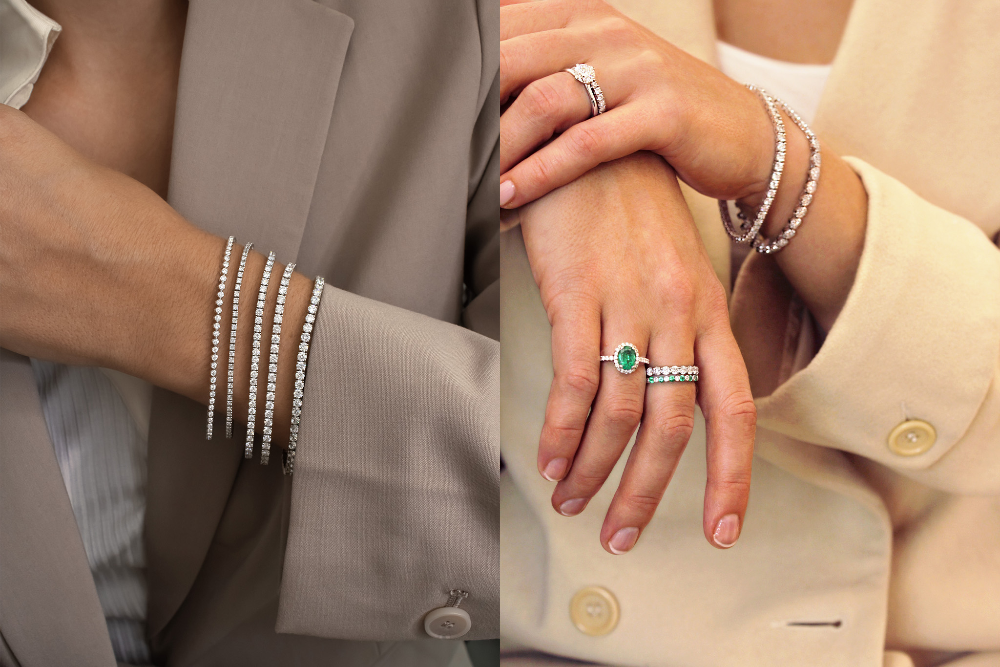 Naturally! Combining lab-grown, diamond, and gemstone bracelets will help you create a fashionable, layered style that is both unique and indicative of your personal taste.