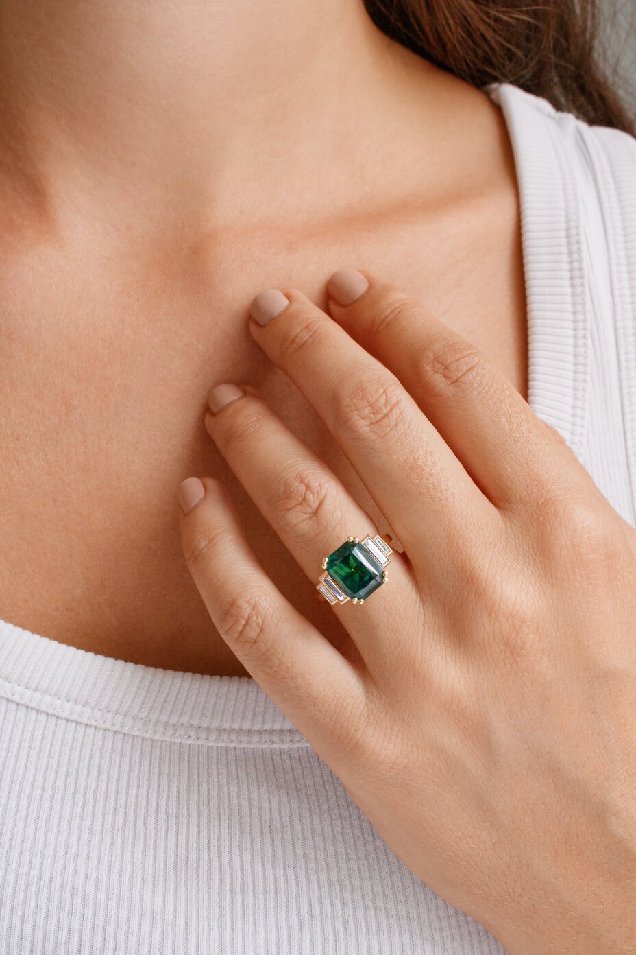 Emeralds pair well with yellow, white, and rose gold, as well as platinum.