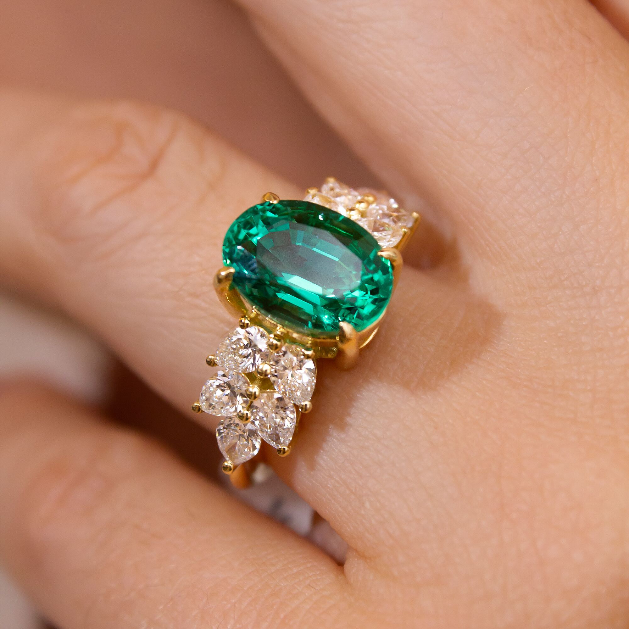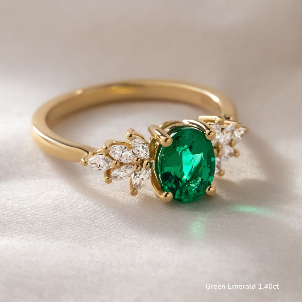 Choosing the Right Metal – Yellow gold enhances the warmth of emeralds, offering a rich and classic appeal. White gold and platinum create a contemporary look, allowing the gemstone’s green hues to stand out with a crisp brilliance. Rose gold, though less common, provides a unique, romantic touch.