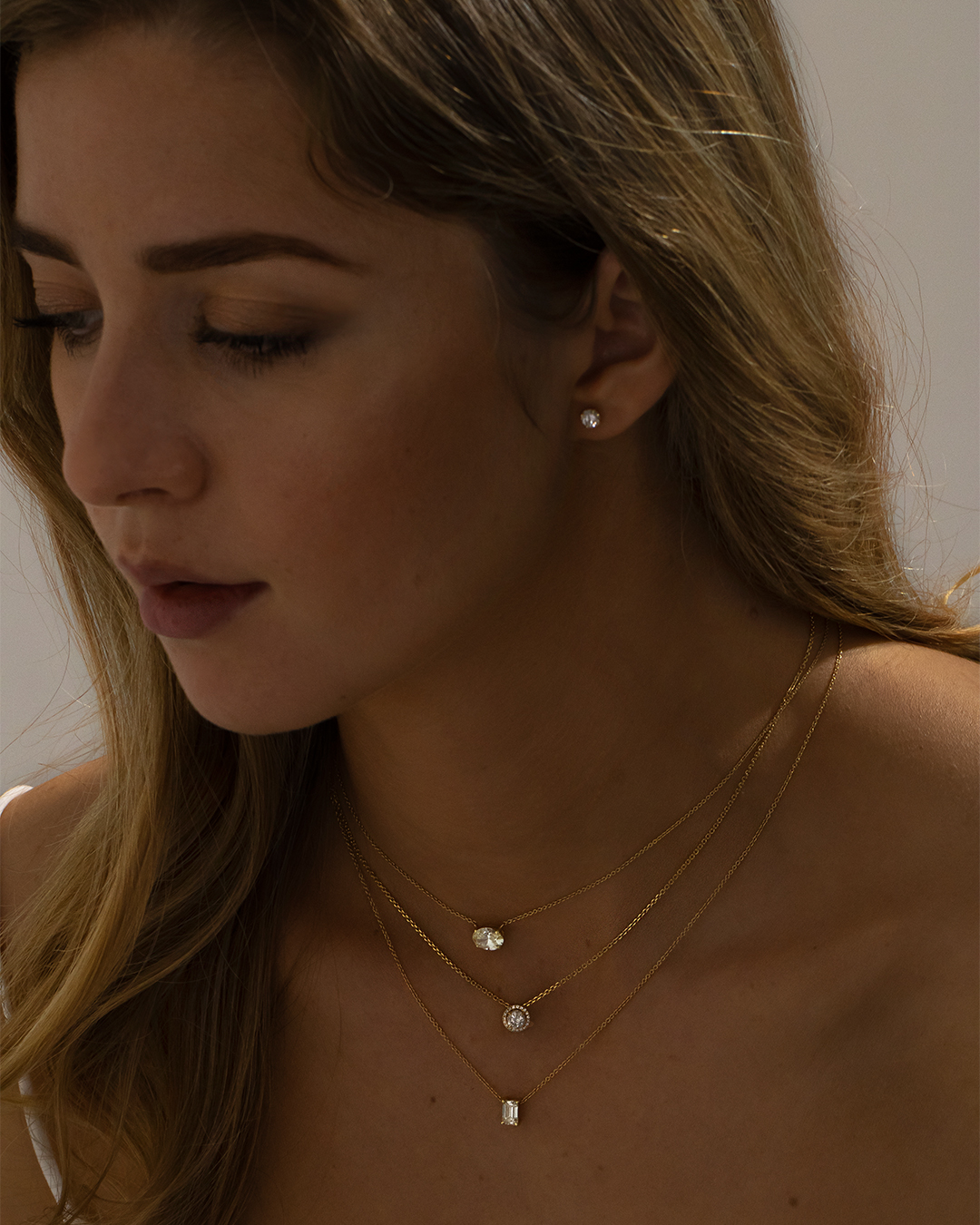 Layered jewellery comes with multiple chains ranging in length, and each corresponds with a charm or stone that wraps around the chain. This type of multi-strand piece is a good hemline necklace in that it may be individualised, layered and most often slightly more boho-chic with different textures, shapes and pendants. Although stacked necklaces are more casual, they can easily be assumed to be an evening look with modern wear.