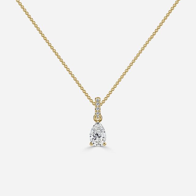 A diamond pendant necklace is a necklace that features a pendant with a diamond at its centre.
