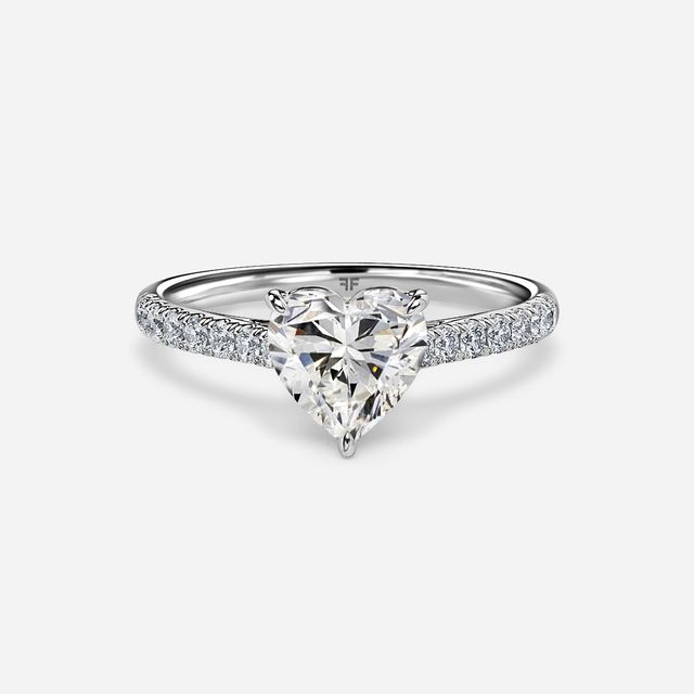 Style variations add noticeable variety to a heart shaped platinum ring. Some designs use slim bands that keep the focus on the center stone, while others add small side stones to give the outline a more defined look. You also see split bands, tapered bands, and rings with slight height changes that adjust how the heart appears from different angles. A platinum heart engagement ring with any of these details brings a clear and personal touch.