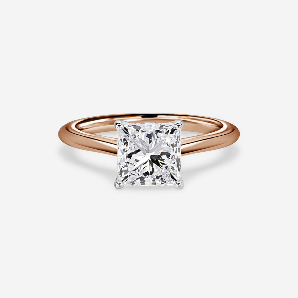 Skillfully designed, our two-tone rose gold petal solitaire engagement ring boasts a delicate, petal-inspired setting that highlights a radiant solitaire, symbolizing the flourishing of your eternal love story. Handcrafted with care in Hatton Gardens, London. Centre Diamond Not Included Setting only.