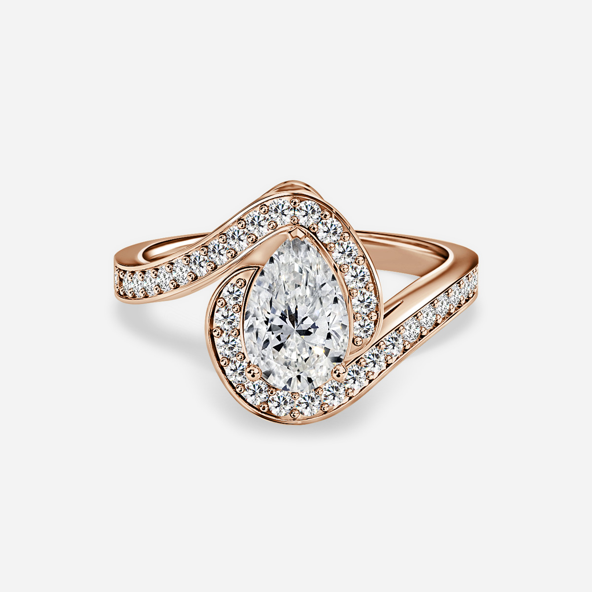 The Aire Rose Gold Halo Engagement Ring exudes timeless elegance with its exquisite halo design, showcasing a brilliant center diamond encircled by a shimmering halo of smaller stones. Crafted in lustrous rose gold, it symbolizes eternal love and sophistication. Handcrafted in Hatton Gardens, London. Centre Diamond Not Included Setting only