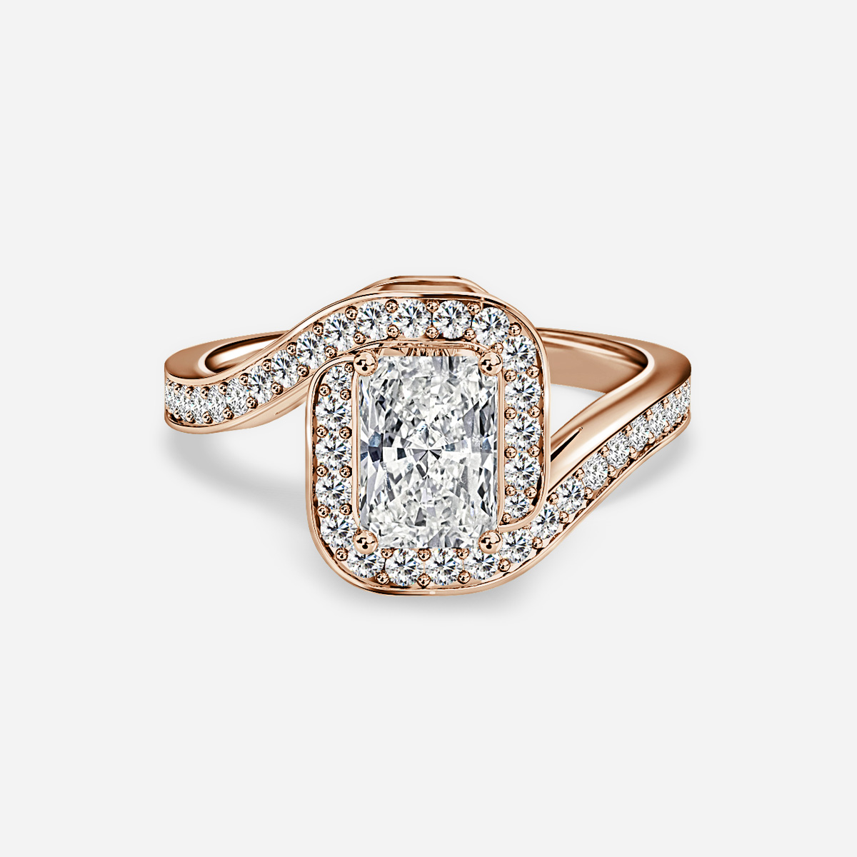 The Aire Rose Gold Halo Engagement Ring exudes timeless elegance with its exquisite halo design, showcasing a brilliant center diamond encircled by a shimmering halo of smaller stones. Crafted in lustrous rose gold, it symbolizes eternal love and sophistication. Handcrafted in Hatton Gardens, London. Centre Diamond Not Included Setting only