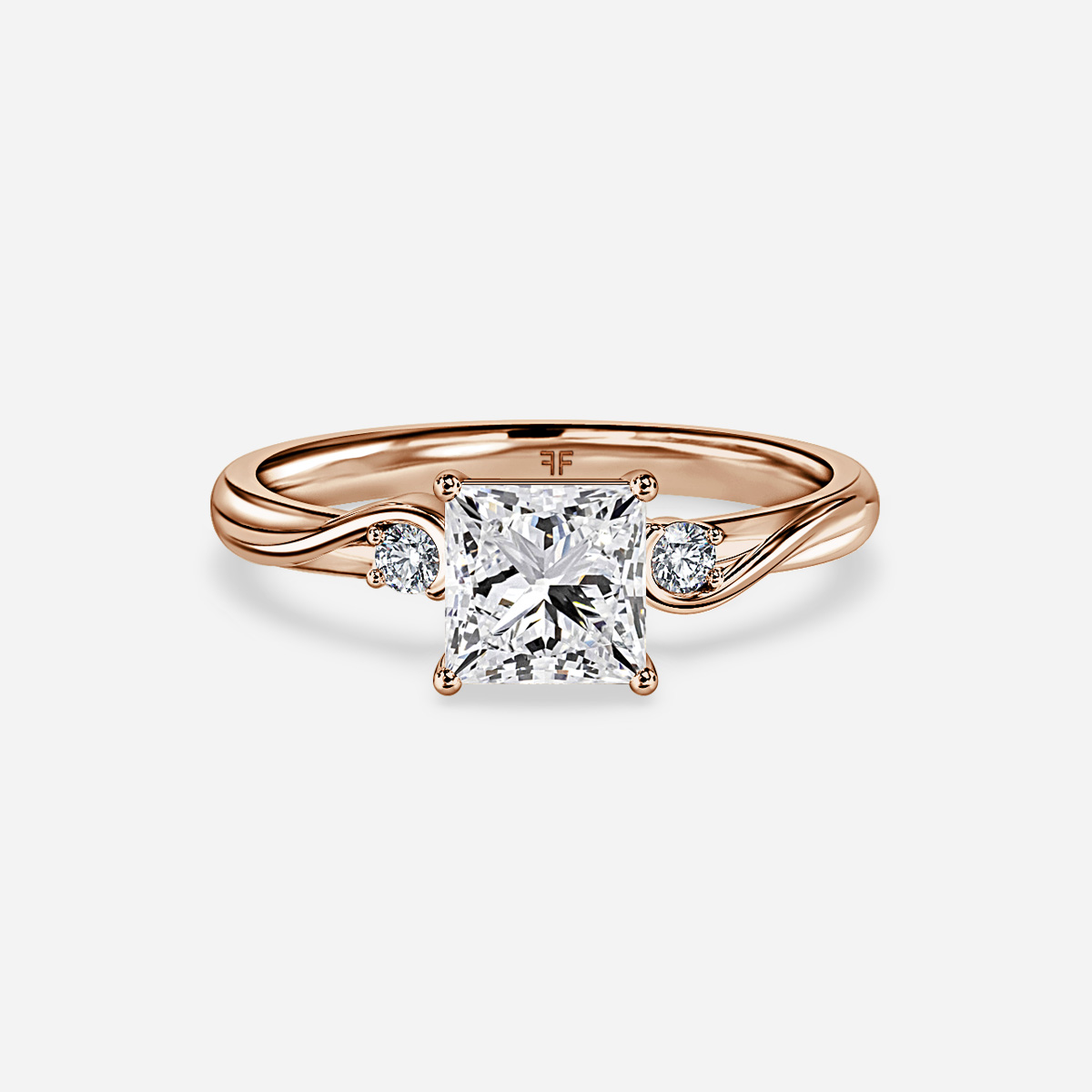 The Alani Rose Gold Three Stone Twisted Band Engagement Ring exudes timeless elegance with its radiant yellow gold setting and intricately twisted band. Featuring three brilliant stones, it symbolizes enduring love and sophistication for a truly enchanting proposal. Handcrafted in Hatton Garden, London Centre Diamond Not Included Setting Only