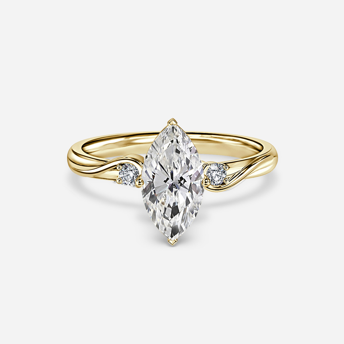 The Alani Yellow Gold Three Stone Twisted Band Engagement Ring exudes timeless elegance with its radiant yellow gold setting and intricately twisted band. Featuring three brilliant stones, it symbolizes enduring love and sophistication for a truly enchanting proposal. Handcrafted in Hatton Garden, London Centre Diamond Not Included Setting Only