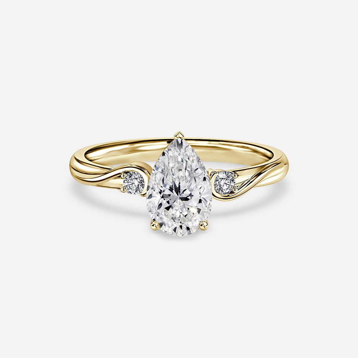The Alani Yellow Gold Three Stone Twisted Band Engagement Ring exudes timeless elegance with its radiant yellow gold setting and intricately twisted band. Featuring three brilliant stones, it symbolizes enduring love and sophistication for a truly enchanting proposal. Handcrafted in Hatton Garden, London Centre Diamond Not Included Setting Only
