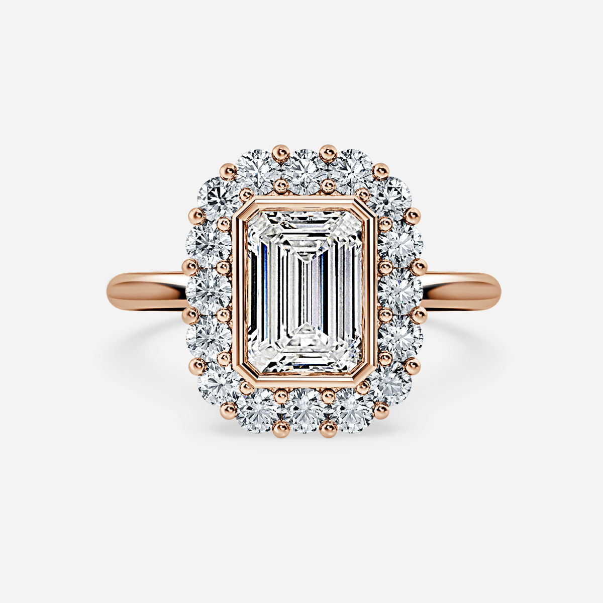 A stunning rose gold halo engagement ring with a floral design, offering a timeless and elegant look. Handcrafted in Hatton Garden, London Centre Diamond Not Included Setting Only