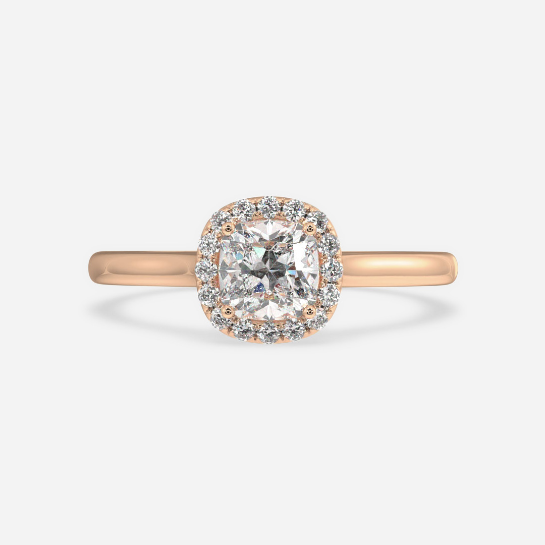 A captivating halo of pavé-set diamonds surrounds the center gem of this timelessly elegant ring. Crafted in timeless rose gold showcase a center diamond. Handcrafted in Hatton Garden, London Center Diamond Not Included Setting Only
