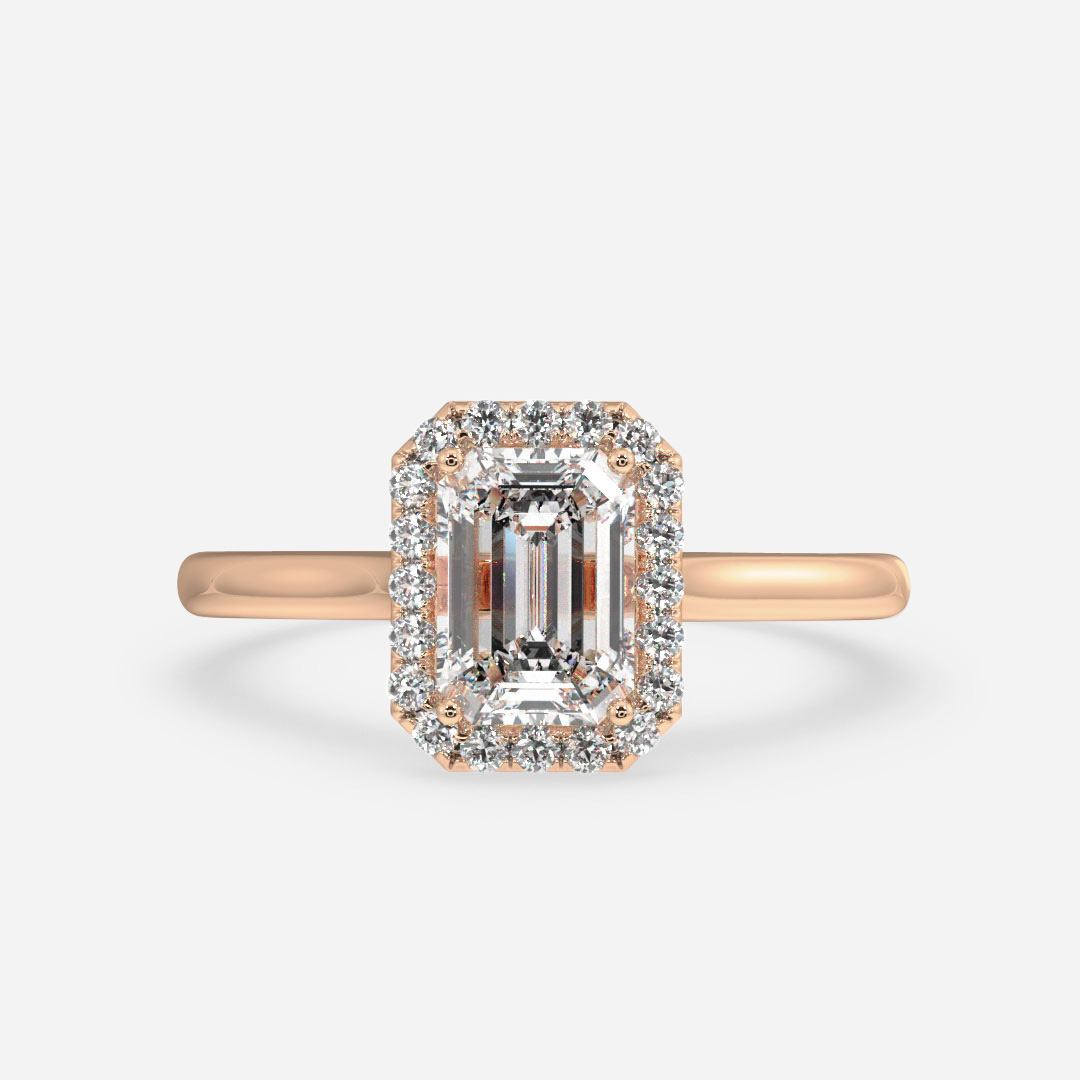 A captivating halo of pavé-set diamonds surrounds the center gem of this timelessly elegant ring. Crafted in timeless rose gold showcase a center diamond. Handcrafted in Hatton Garden, London Center Diamond Not Included Setting Only