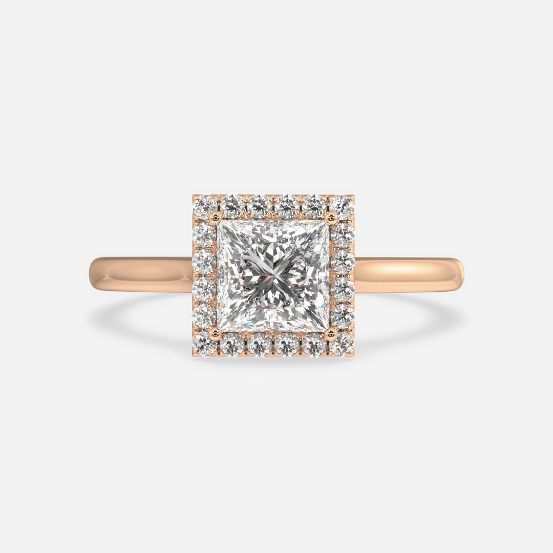 A captivating halo of pavé-set diamonds surrounds the center gem of this timelessly elegant ring. Crafted in timeless rose gold showcase a center diamond. Handcrafted in Hatton Garden, London Center Diamond Not Included Setting Only