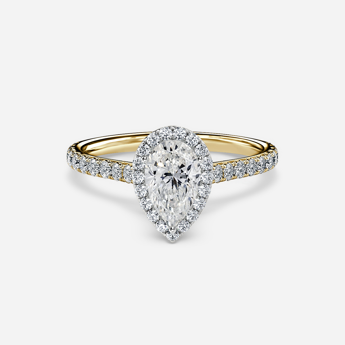 A yellow gold two tone pave set diamond halo engagement ring featuring timeless brilliance with a gleam of sparkle, perfect for your special someone. Handcrafted by our master jewellers in Hatton Gardens, London. Centre Diamond Not Included Setting Only