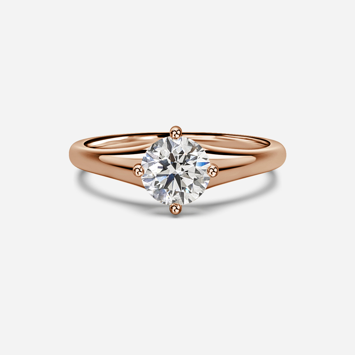 The Blair ring features a classic solitaire setting with a gracefully tapered rose gold band that thickens slightly around the centre stone. Its sculptural form highlights the simplicity and strength of the design, offering a timeless yet contemporary aesthetic. A refined choice for those who appreciate clean lines and enduring elegance. Handcrafted in Hatton Garden, London. Centre Diamond Not Included, Setting Only.