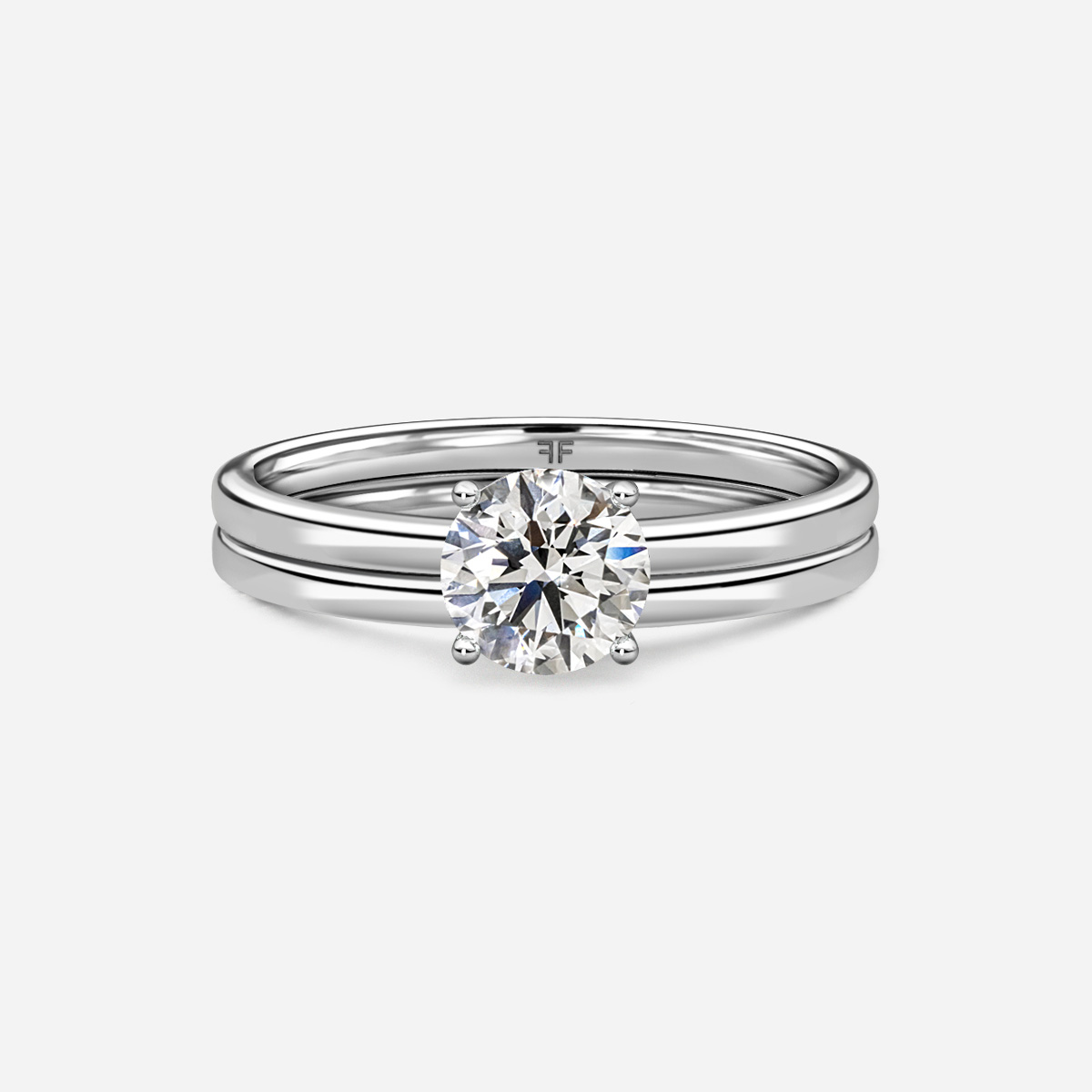 The Chelsea Platinum Plain Band Bridal Set features a delicate solitaire engagement ring paired with an elegantly simple wedding band, offering a classic and refined aesthetic. Crafted in platinum, this set ensures lasting elegance and beauty for your special day. Handcrafted in Hatton Garden, London. Centre Diamond Not Included Setting Only