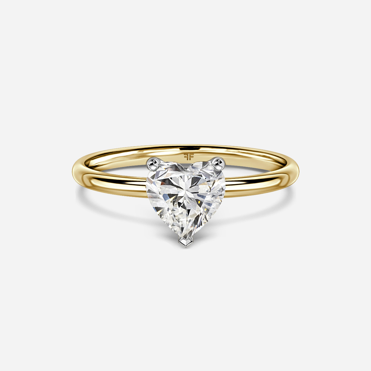 A classic yellow gold two tone solitaire engagement ring supported by four prongs and delicate plain band. Handcrafted in Hatton Garden, London Centre Diamond Not Included Setting Only