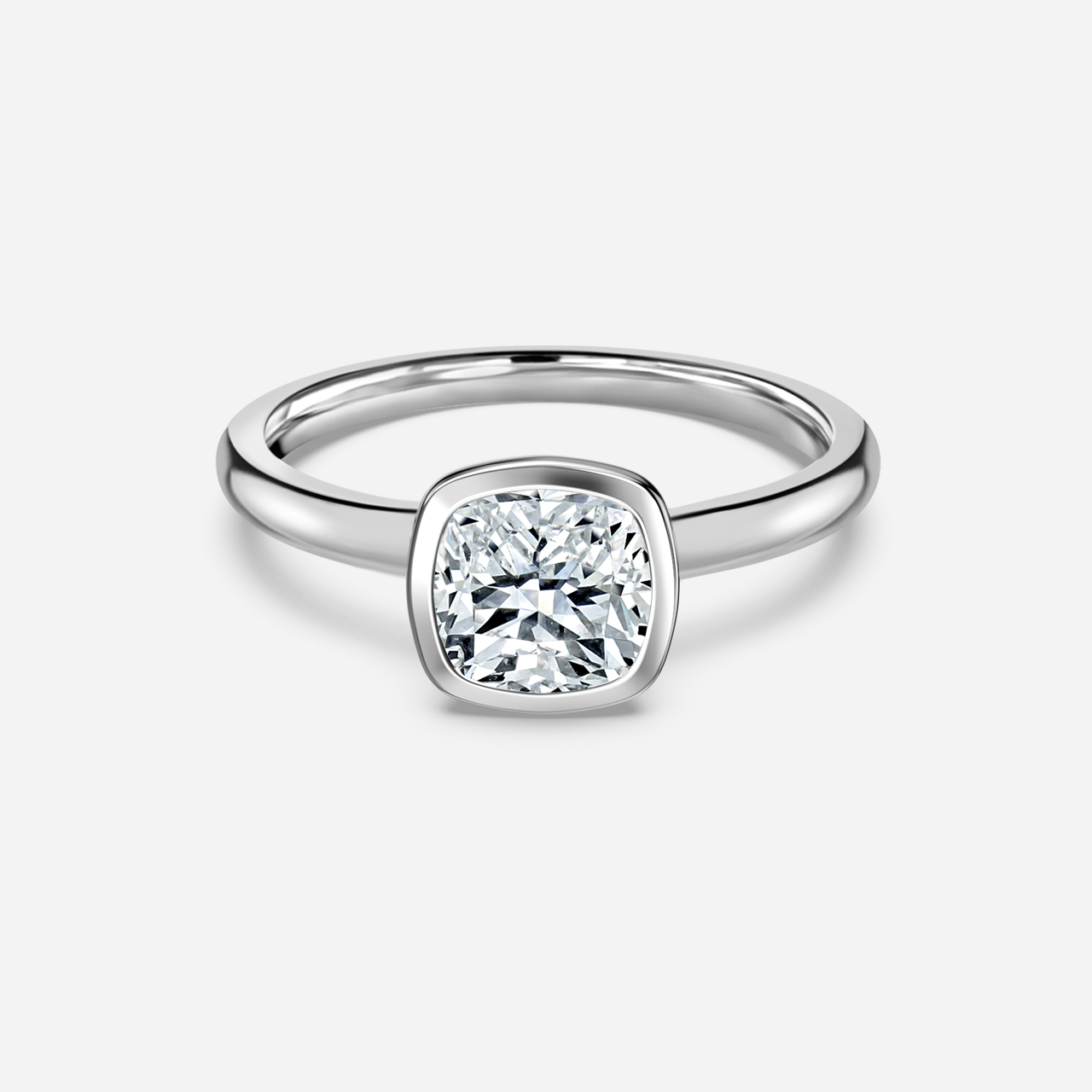 A beautiful and contemporary, this exquisite bezel set platinum engagement ring features a bezel set centre stone within a basket setting for a unique look. Handcrafted in Hatton Gardens, London. Centre Diamond Not Included Setting Only