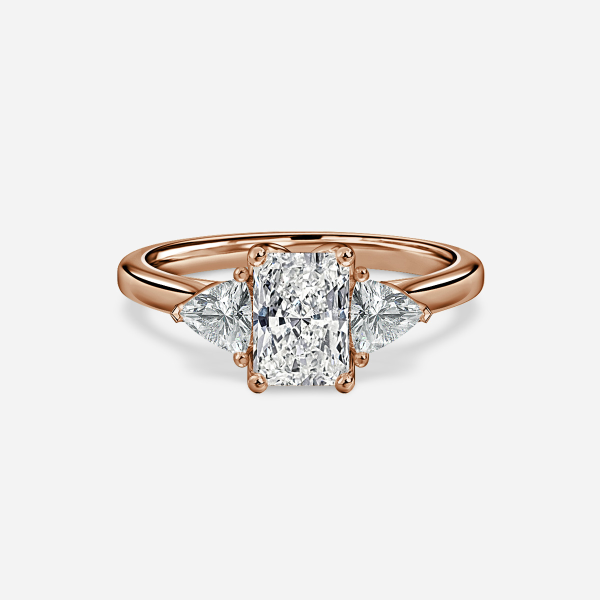 The Ciara is a luxurious ring, combining a beautiful petal style collet with an elegant pair of trillion shaped diamonds. The gaps created underneath the stones allow for excellent light play to make your diamonds shine. Handcrafted in Hatton Garden, London. Centre Diamond Not Included, Setting only.