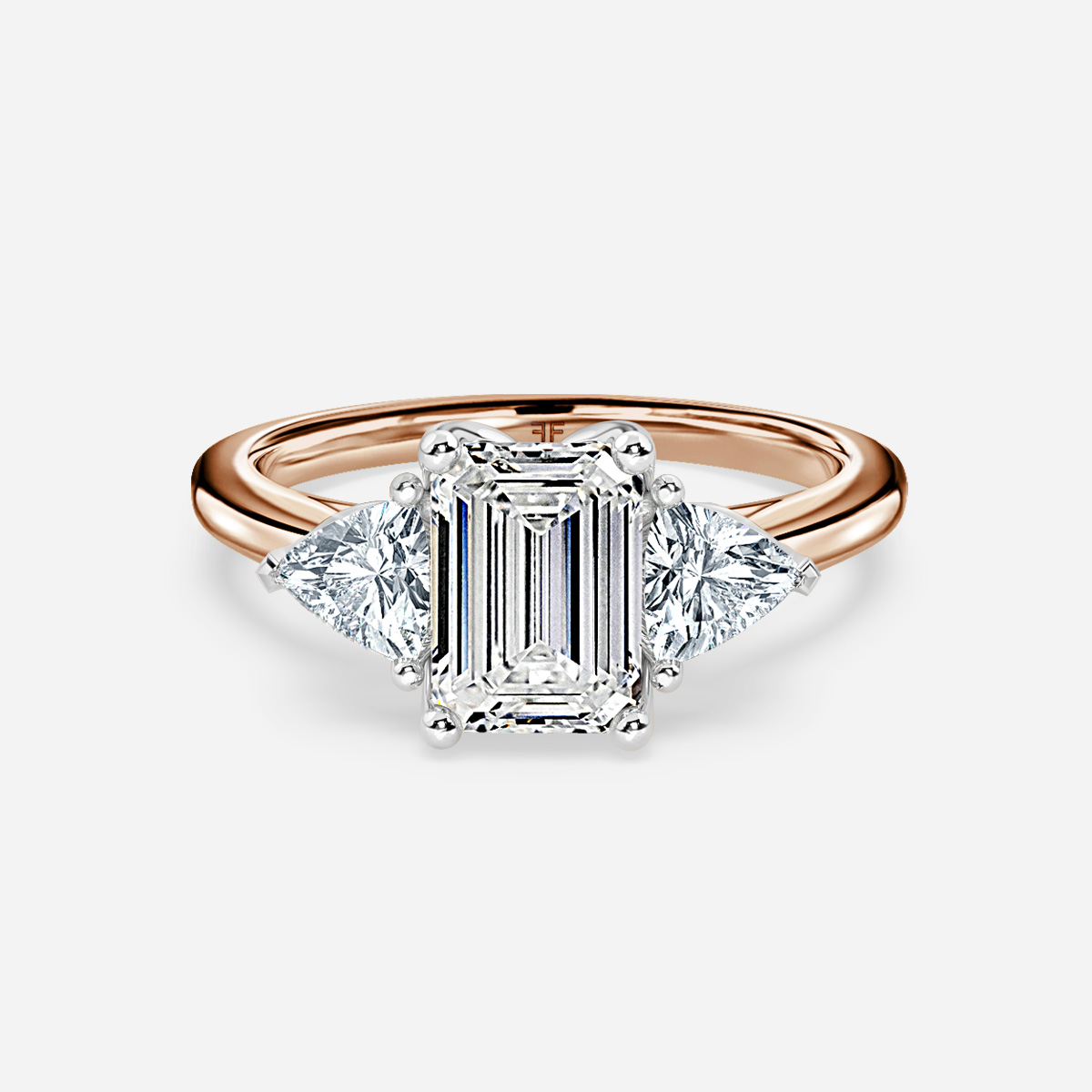 The Ciara is a luxurious ring, combining a beautiful petal style collet with an elegant pair of trillion shaped diamonds. The gaps created underneath the stones allow for excellent light play to make your diamonds shine. Handcrafted in Hatton Garden, London. Centre Diamond Not Included, Setting only.