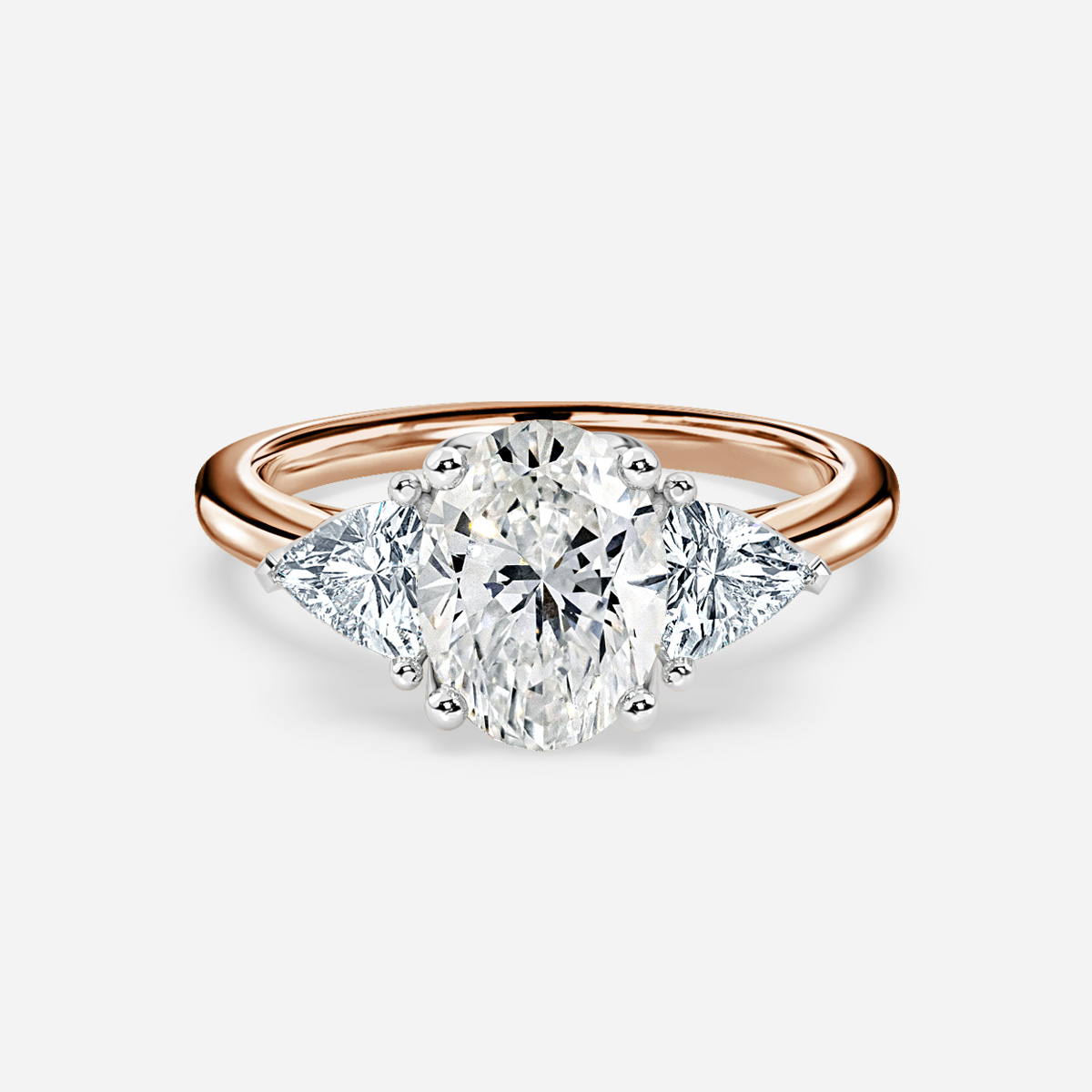 The Ciara is a luxurious ring, combining a beautiful petal style collet with an elegant pair of trillion shaped diamonds. The gaps created underneath the stones allow for excellent light play to make your diamonds shine. Handcrafted in Hatton Garden, London. Centre Diamond Not Included, Setting only.