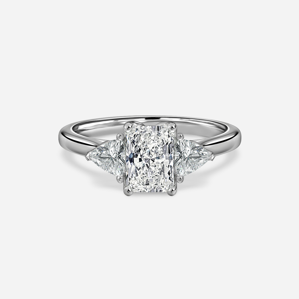 The Ciara is a luxurious ring, combining a beautiful petal style collet with an elegant pair of trillion shaped diamonds. The gaps created underneath the stones allow for excellent light play to make your diamonds shine. Handcrafted in Hatton Garden, London. Centre Diamond Not Included, Setting only.