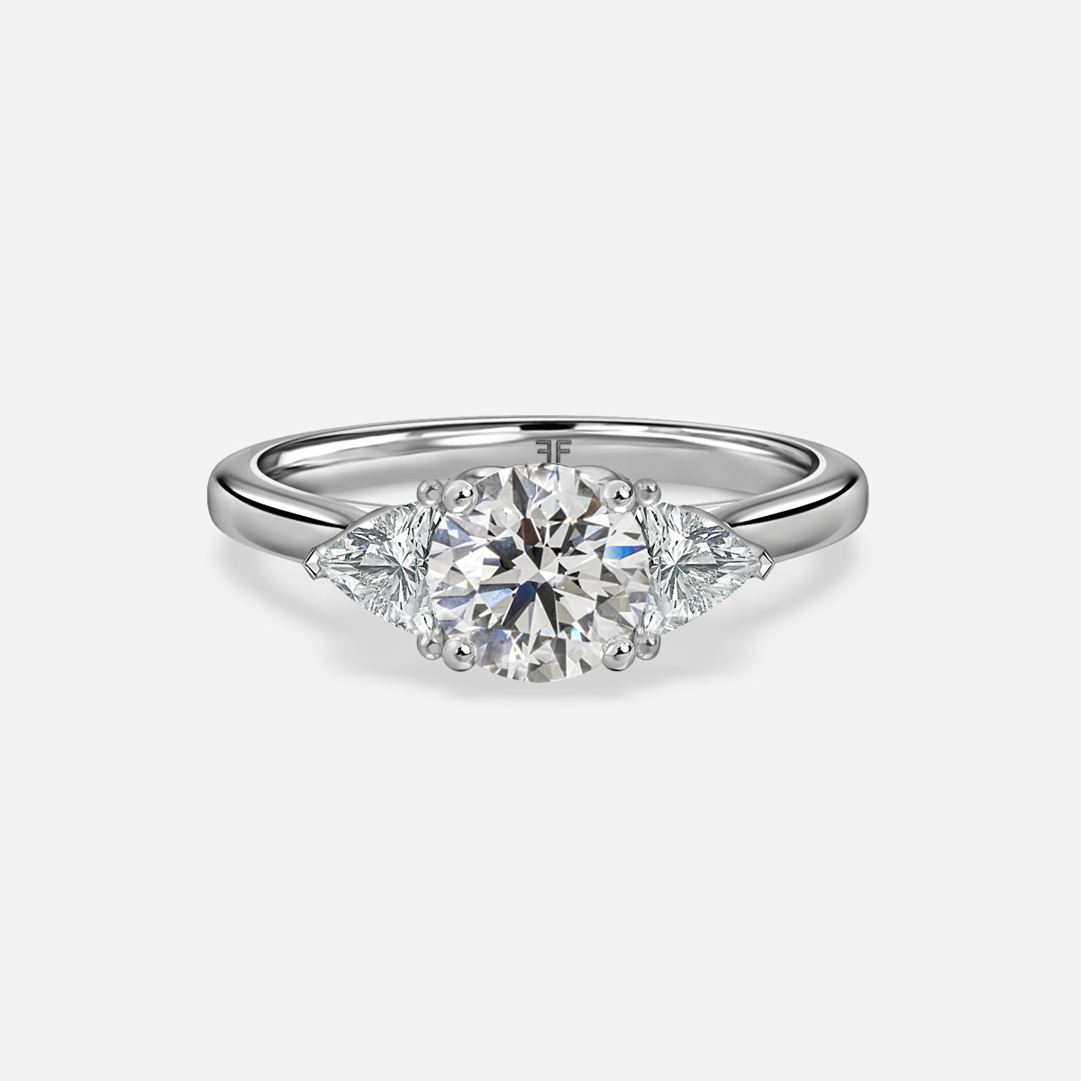The Ciara is a luxurious ring, combining a beautiful petal style collet with an elegant pair of trillion shaped diamonds. The gaps created underneath the stones allow for excellent light play to make your diamonds shine. Handcrafted in Hatton Garden, London. Centre Diamond Not Included, Setting only.