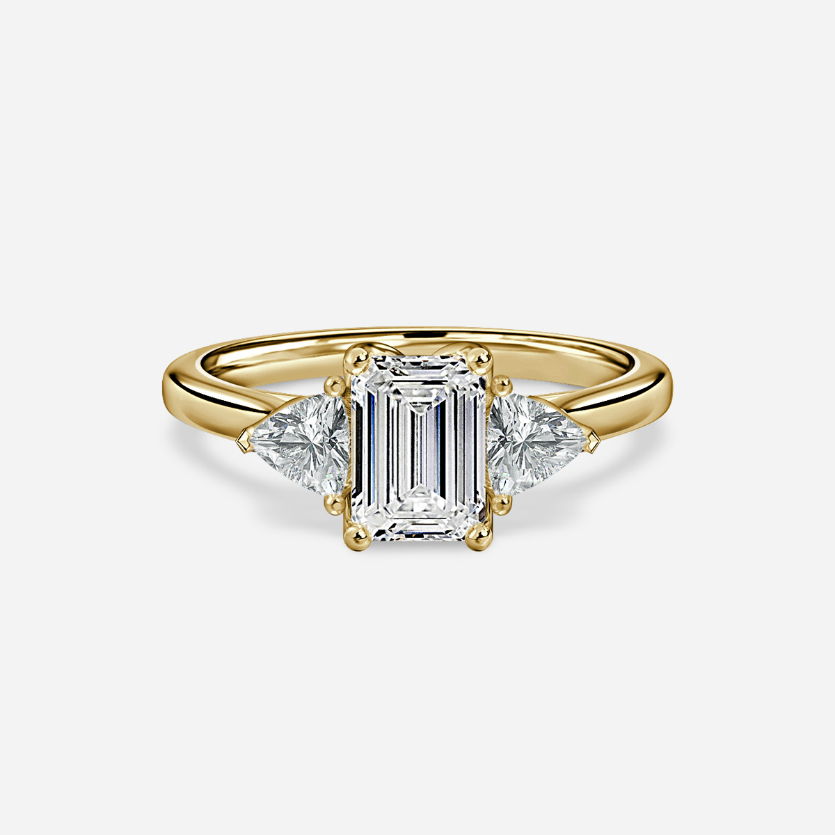 The Ciara is a luxurious ring, combining a beautiful petal style collet with an elegant pair of trillion shaped diamonds. The gaps created underneath the stones allow for excellent light play to make your diamonds shine. Handcrafted in Hatton Garden, London. Centre Diamond Not Included, Setting only.