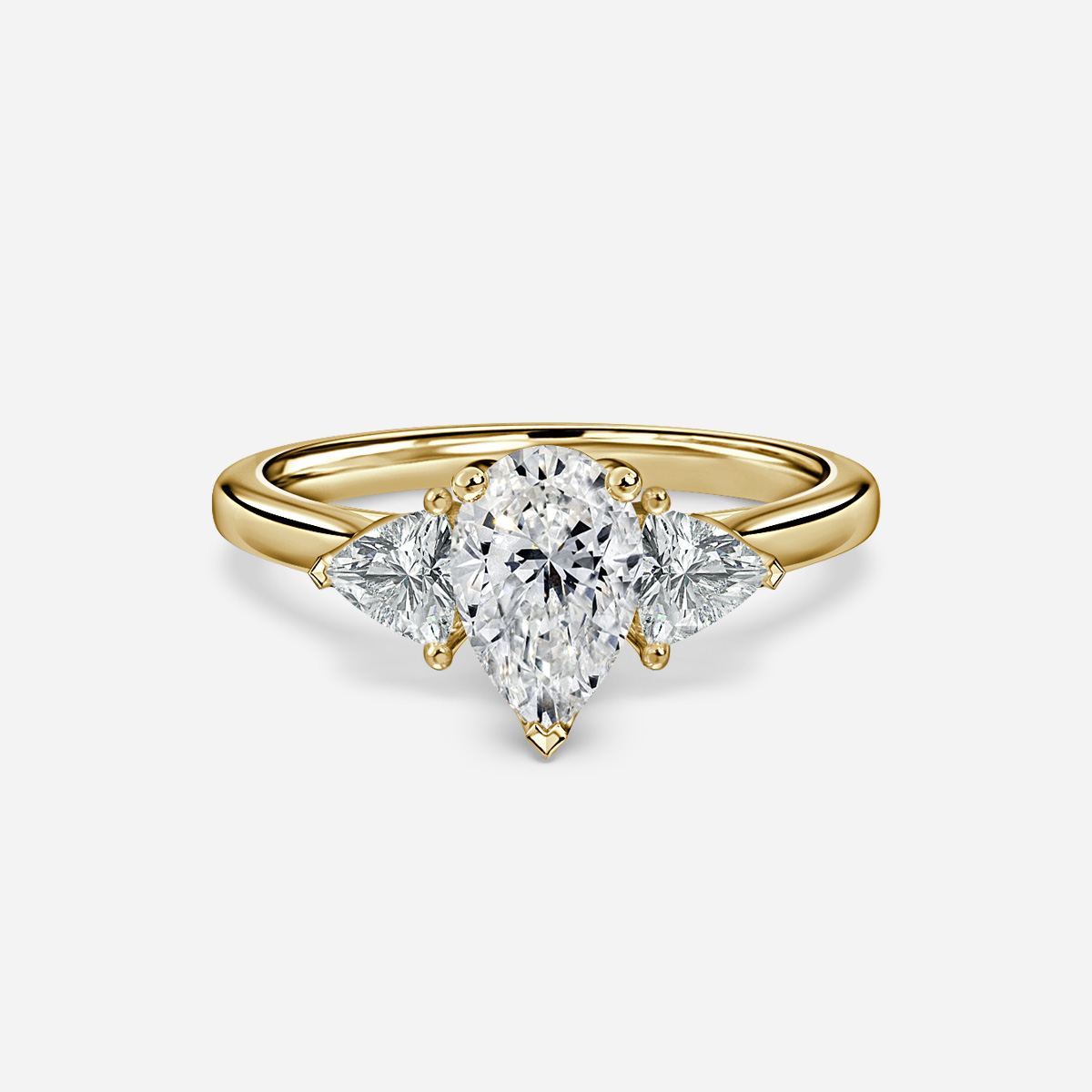 The Ciara is a luxurious ring, combining a beautiful petal style collet with an elegant pair of trillion shaped diamonds. The gaps created underneath the stones allow for excellent light play to make your diamonds shine. Handcrafted in Hatton Garden, London. Centre Diamond Not Included, Setting only.