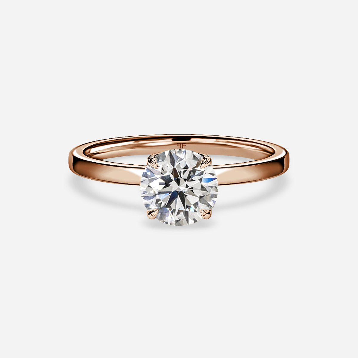 Our exquisite rose gold petal solitaire engagement ring has four romantically styled petals holding your centre diamond. This delicately designed engagement ring marries together both elegance and comfort. Handcrafted in Hatton Gardens, London. Centre Diamond Not Included Setting Only