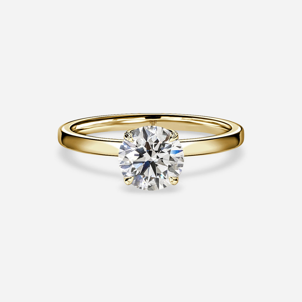 Our exquisite yellow gold petal solitaire engagement ring has four romantically styled petals holding your centre diamond. This delicately designed engagement ring marries together both elegance and comfort. Handcrafted in Hatton Gardens, London. Centre Diamond Not Included Setting Only