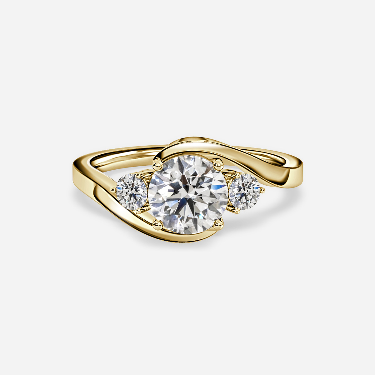 A yellow gold trilogy engagement ring features two exquisite side stone round diamonds that enhance the centre stone, telling the past, present and future tale of your relationship. Handcrafted in Hatton Gardens, London. Centre Diamond Not Included Setting only