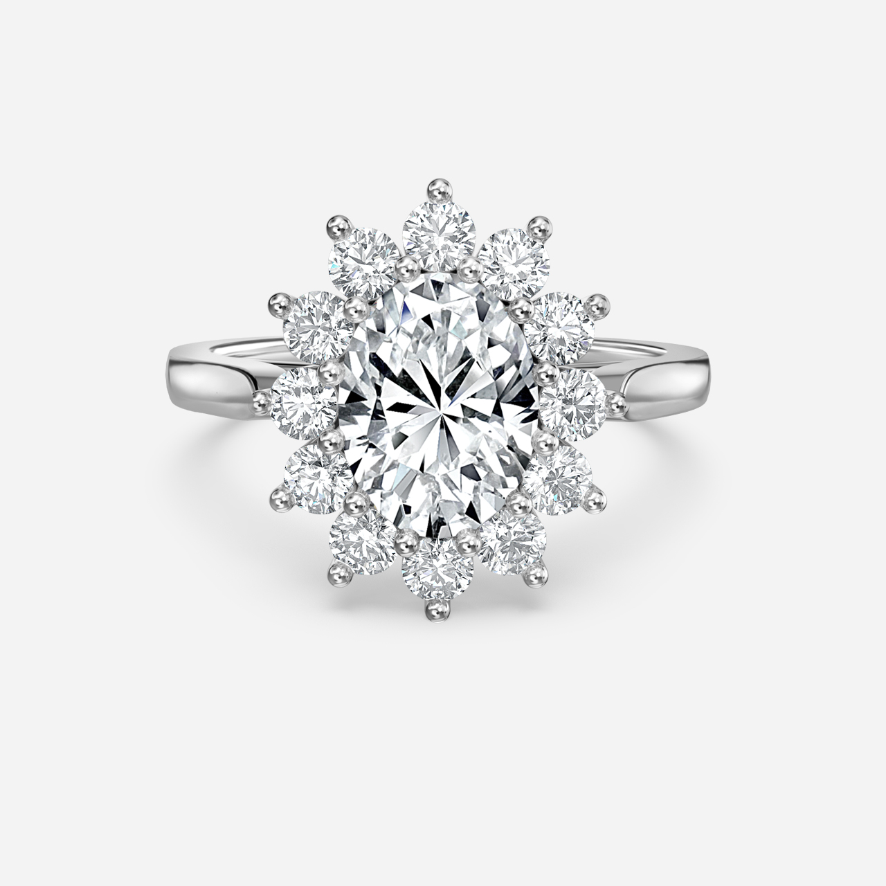 A platinum cluster diamond engagement ring is a stunning and unique piece of jewelry featuring a cluster of intricate stones set in a stylish design. It is perfect for expressing your everlasting love and commitment. Handcrafted in Hatton Gardens, London. Centre Diamond Not Included Setting Only