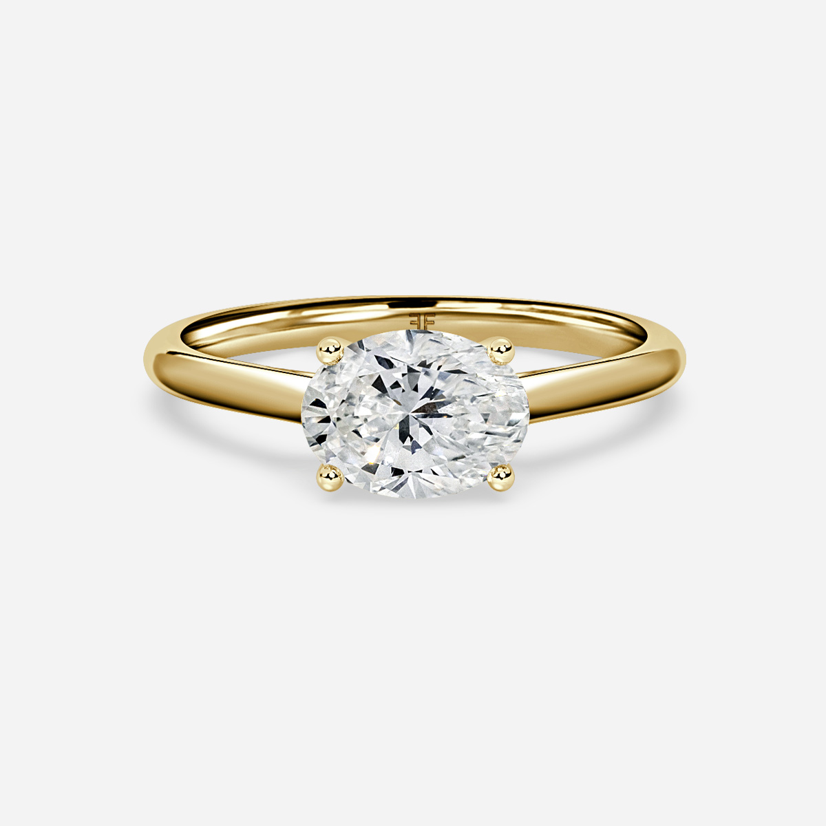 An elegant fusion of Eastern and Western design aesthetics, the East-West style yellow gold solitaire engagement ring showcases a horizontally set dazzling diamond, exuding modern sophistication while paying homage to traditional charm. Handcrafted in Hatton Gardens, London. Centre Diamond Not Included Setting only