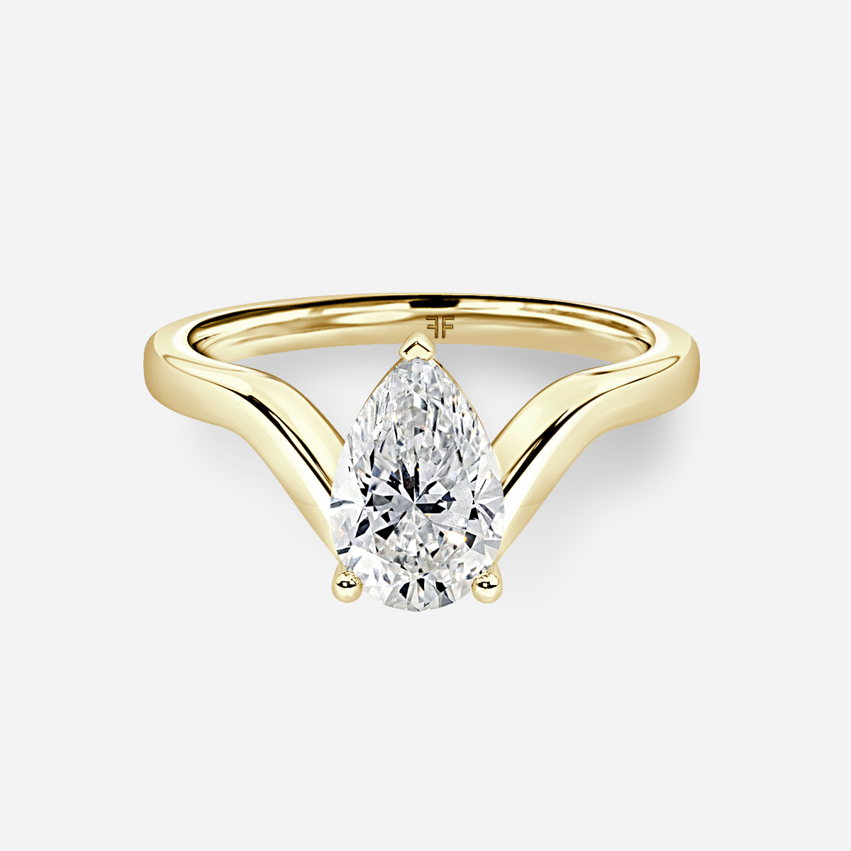 The V-shape single pear diamond solitaire modern engagement ring features a stunning, pear-shaped diamond set in a classic solitaire setting with a unique V-shaped band design. This elegant ring is sure to make an unforgettable statement of love and commitment. Handcrafted in Hatton Garden, London Centre Diamond Not Included Setting Only