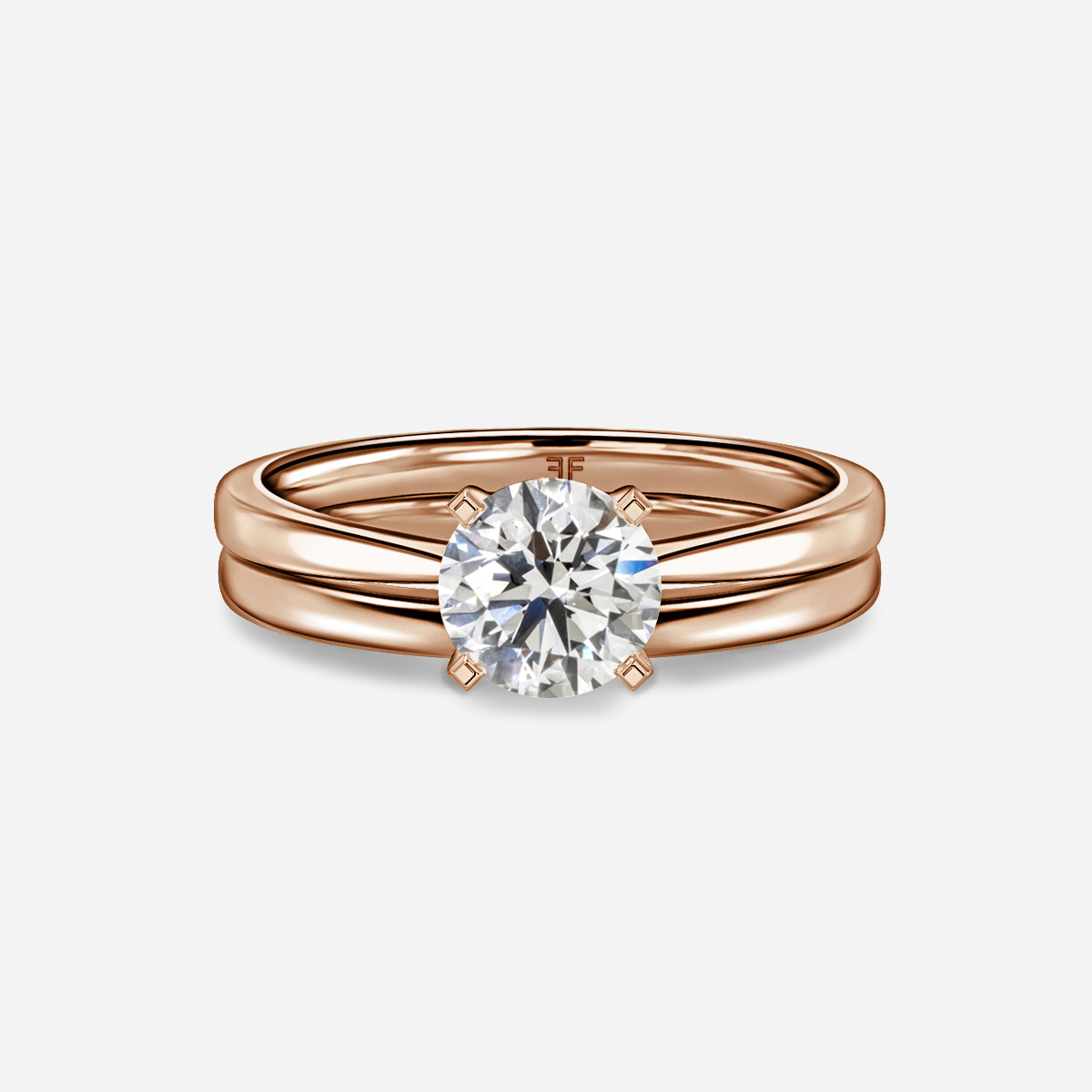 The Firefly Solitaire Rose Gold Plain Band Bridal Set is a dazzling duo, featuring a solitaire tapered engagement ring paired seamlessly with a plain wedding band for timeless elegance. Handcrafted in Hatton Garden, London Centre Diamond Not Included Setting Only