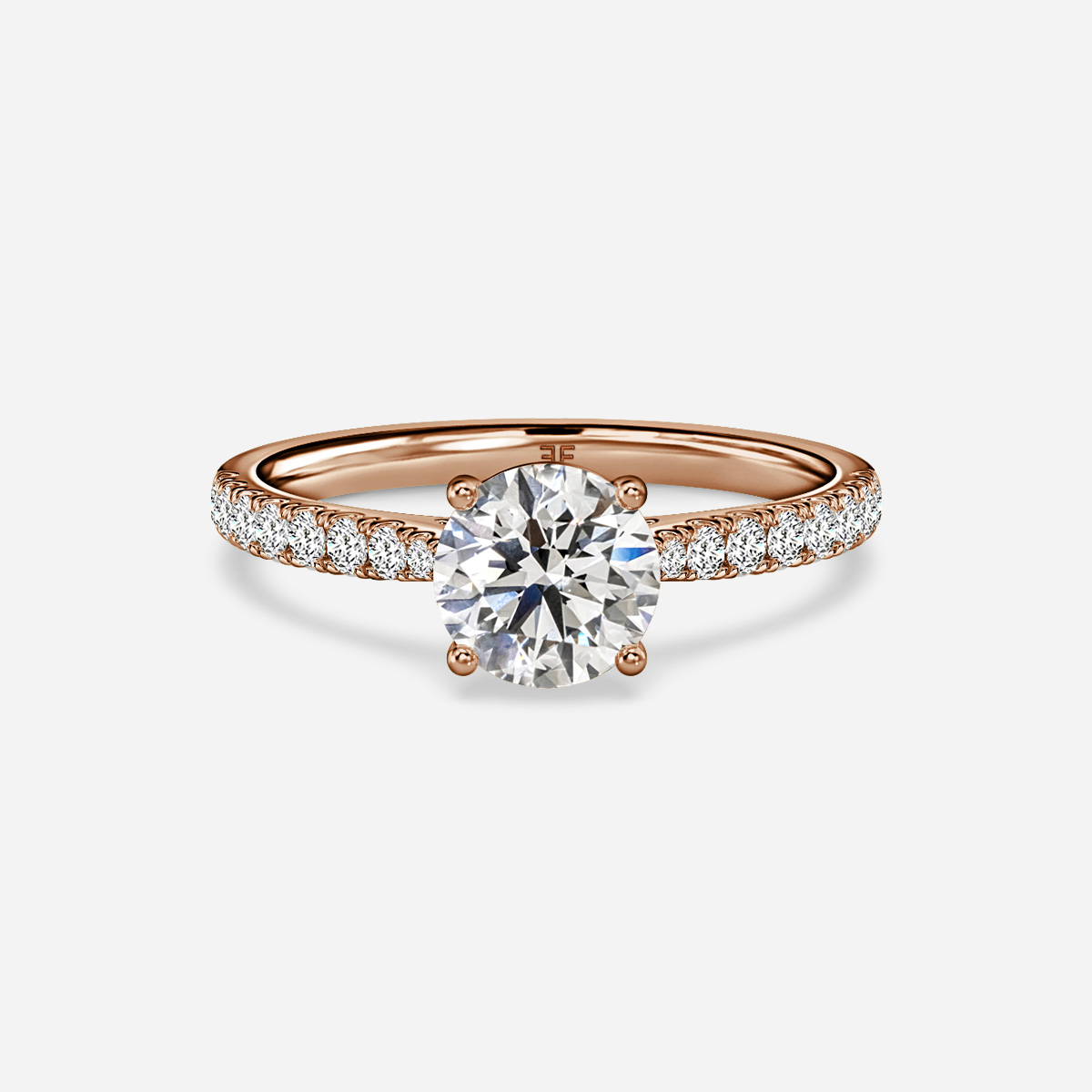 A rose gold round brilliant four claw engagement ring, prong set diamond band, simple but elegant setting, the diamond set shoulders perfectly compliment the centre stone. Handcrafted in Hatton Garden, London Centre Diamond Not Included Setting Only