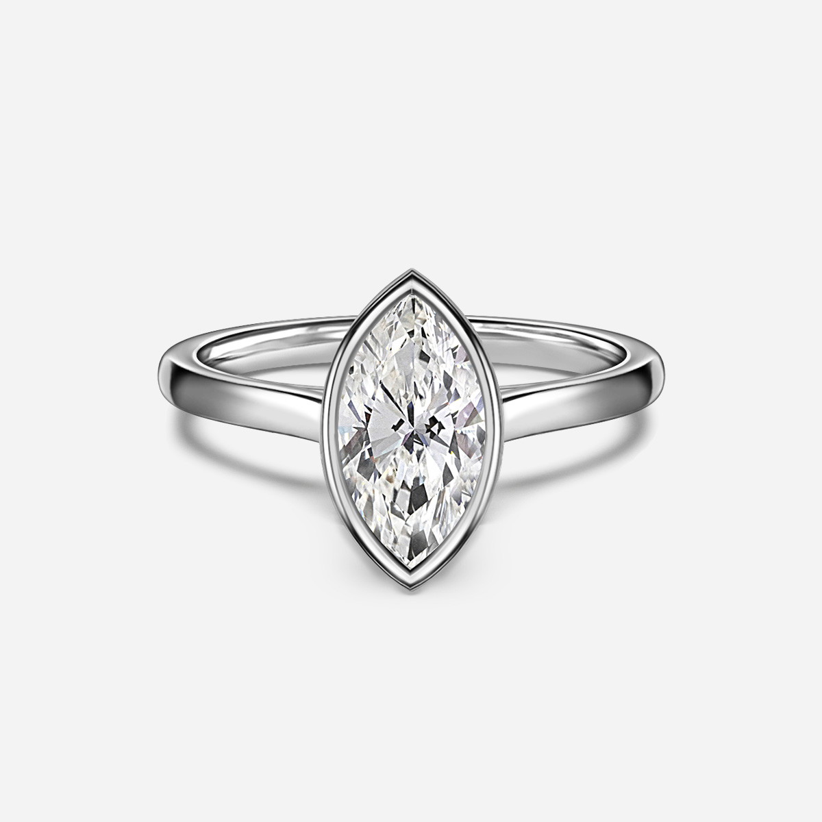 The Georgia Platinum Bezel Engagement Ring features a sleek and modern design with a U-shaped basket elegantly supporting the center stone, creating a striking and timeless look. Its polished platinum band adds a touch of luxury, making it a perfect choice for a unique engagement. Handcrafted in Hatton Gardens, London. Centre Diamond Not Included Setting Only