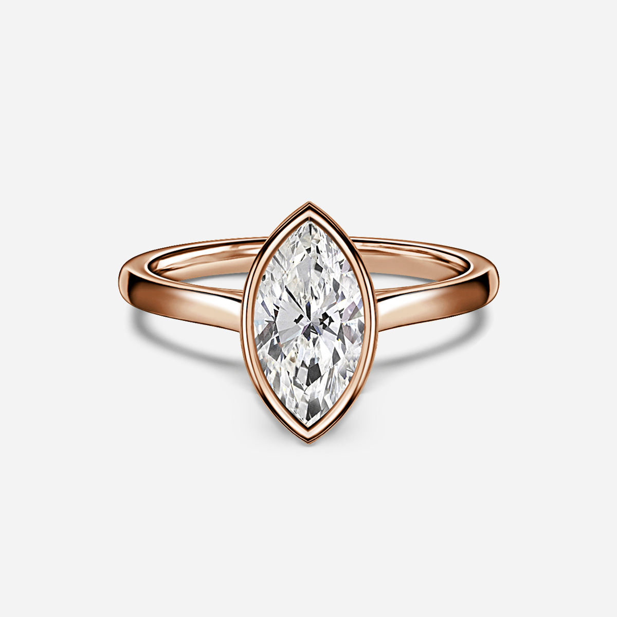 The Georgia Rose Gold Bezel Engagement Ring features a sleek and modern design with a U-shaped basket elegantly supporting the center stone, creating a striking and timeless look. Its polished rose gold band adds a touch of luxury, making it a perfect choice for a unique engagement. Handcrafted in Hatton Gardens, London. Centre Diamond Not Included Setting Only