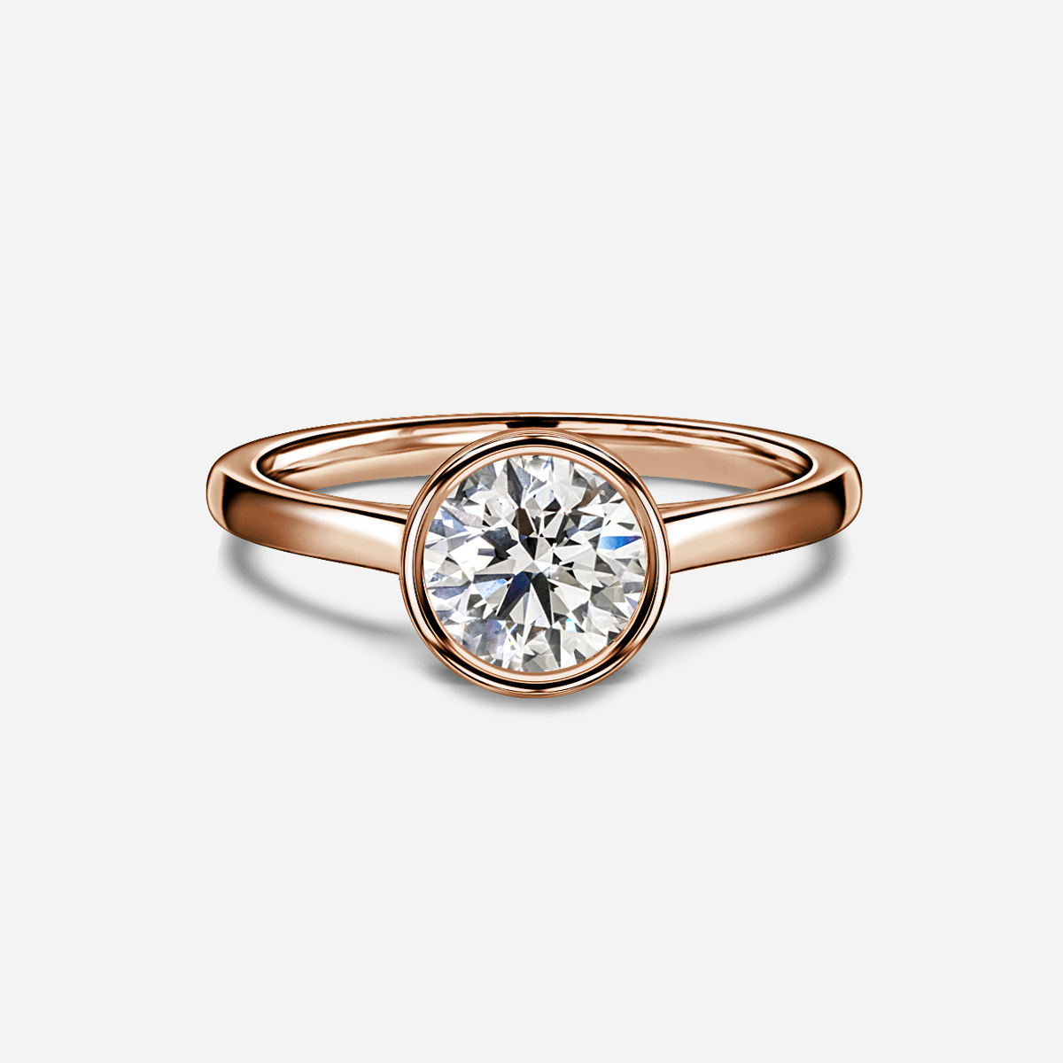 The Georgia Rose Gold Bezel Engagement Ring features a sleek and modern design with a U-shaped basket elegantly supporting the center stone, creating a striking and timeless look. Its polished rose gold band adds a touch of luxury, making it a perfect choice for a unique engagement. Handcrafted in Hatton Gardens, London. Centre Diamond Not Included Setting Only