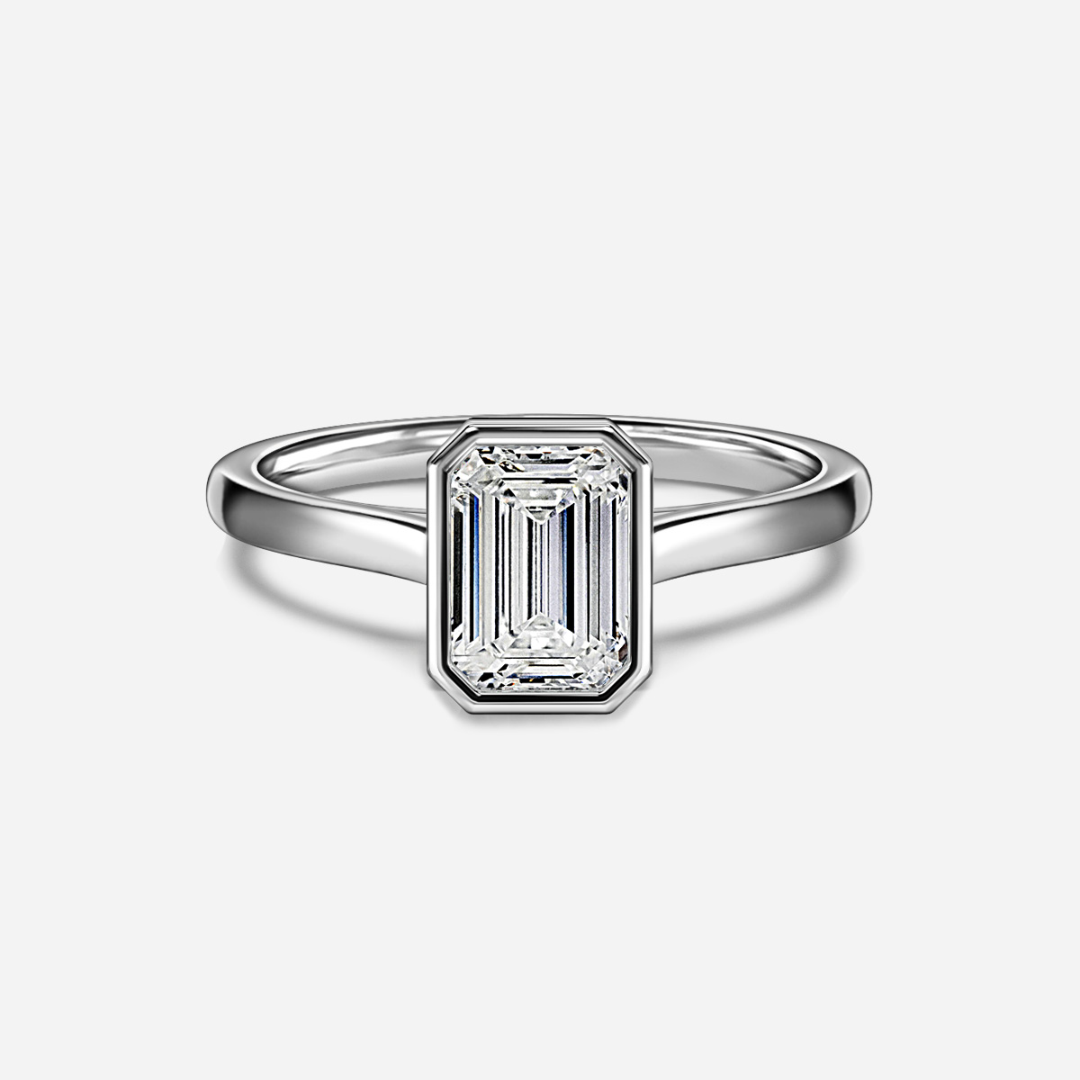 The Georgia White Gold Bezel Engagement Ring features a sleek and modern design with a U-shaped basket elegantly supporting the center stone, creating a striking and timeless look. Its polished white gold band adds a touch of luxury, making it a perfect choice for a unique engagement. Handcrafted in Hatton Gardens, London. Centre Diamond Not Included Setting Only
