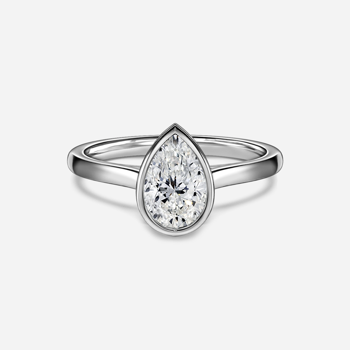 The Georgia White Gold Bezel Engagement Ring features a sleek and modern design with a U-shaped basket elegantly supporting the center stone, creating a striking and timeless look. Its polished white gold band adds a touch of luxury, making it a perfect choice for a unique engagement. Handcrafted in Hatton Gardens, London. Centre Diamond Not Included Setting Only