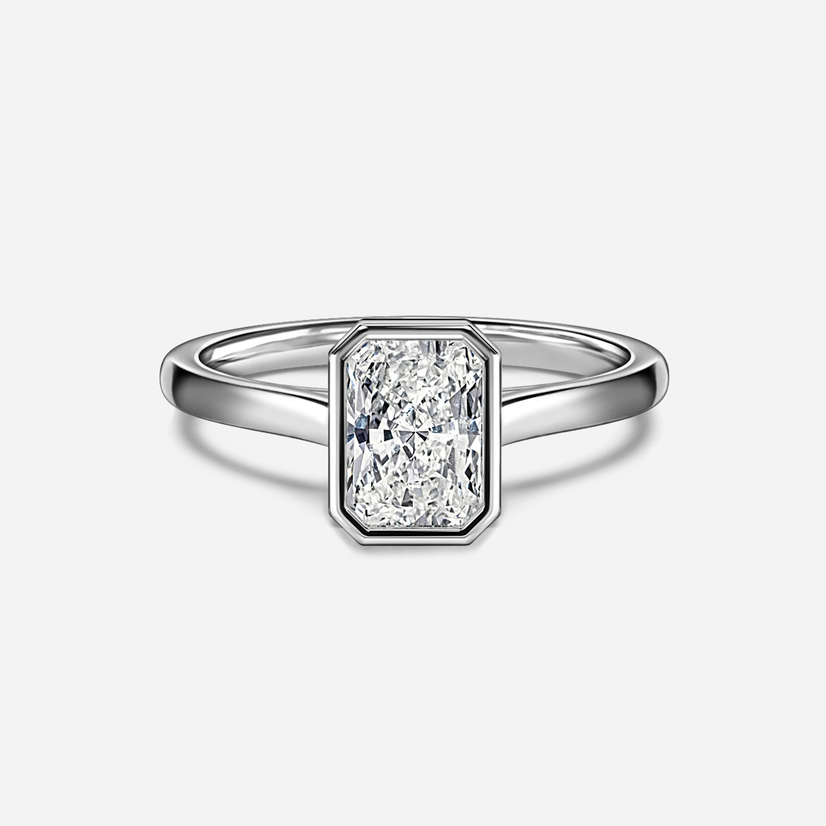 The Georgia White Gold Bezel Engagement Ring features a sleek and modern design with a U-shaped basket elegantly supporting the center stone, creating a striking and timeless look. Its polished white gold band adds a touch of luxury, making it a perfect choice for a unique engagement. Handcrafted in Hatton Gardens, London. Centre Diamond Not Included Setting Only