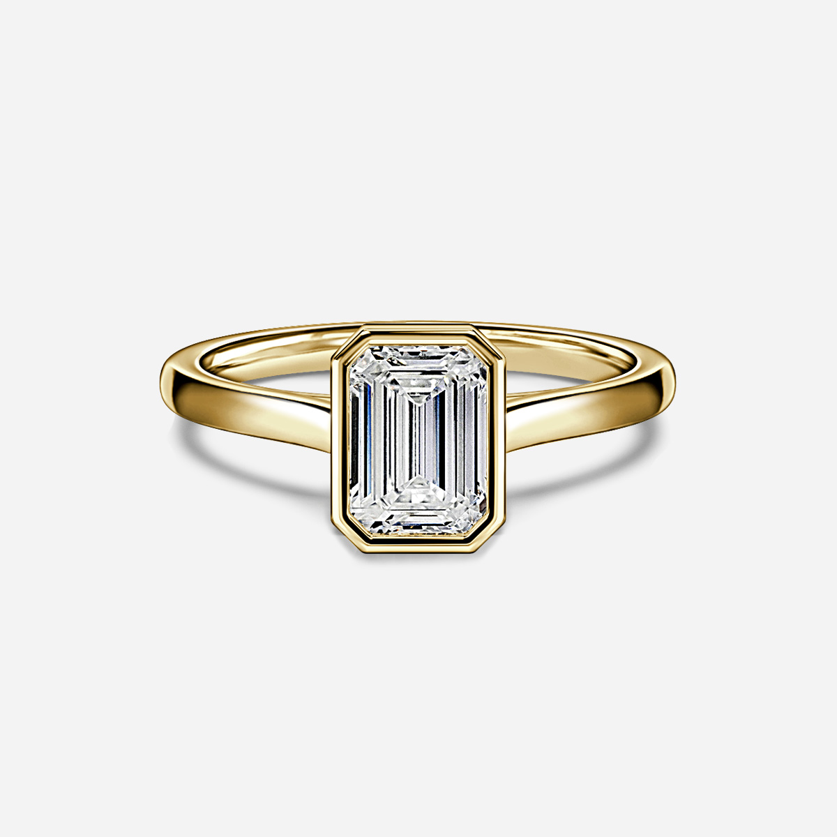 The Georgia Yellow Gold Bezel Engagement Ring features a sleek and modern design with a U-shaped basket elegantly supporting the center stone, creating a striking and timeless look. Its polished yellow gold band adds a touch of luxury, making it a perfect choice for a unique engagement. Handcrafted in Hatton Gardens, London. Centre Diamond Not Included Setting Only