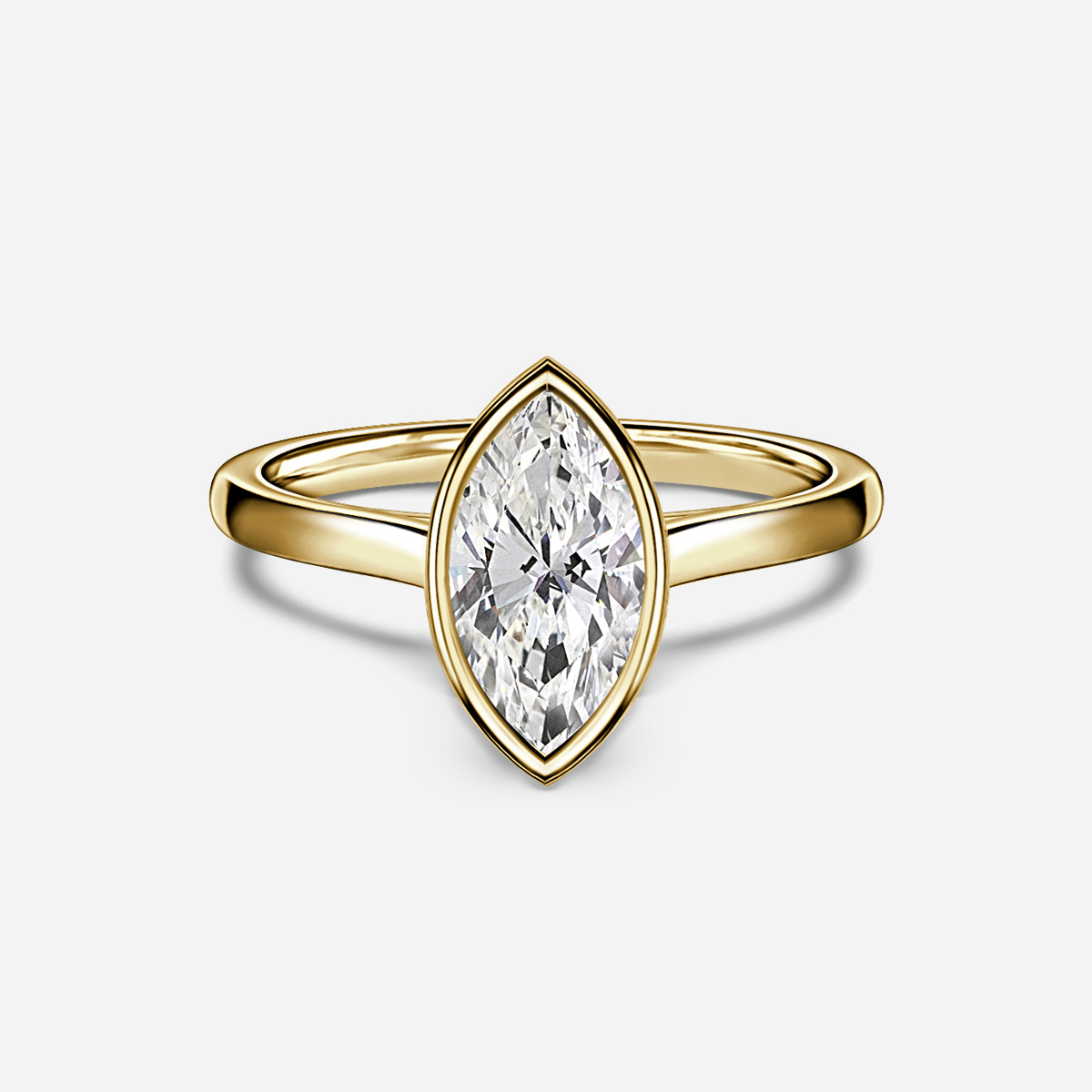 The Georgia Yellow Gold Bezel Engagement Ring features a sleek and modern design with a U-shaped basket elegantly supporting the center stone, creating a striking and timeless look. Its polished yellow gold band adds a touch of luxury, making it a perfect choice for a unique engagement. Handcrafted in Hatton Gardens, London. Centre Diamond Not Included Setting Only