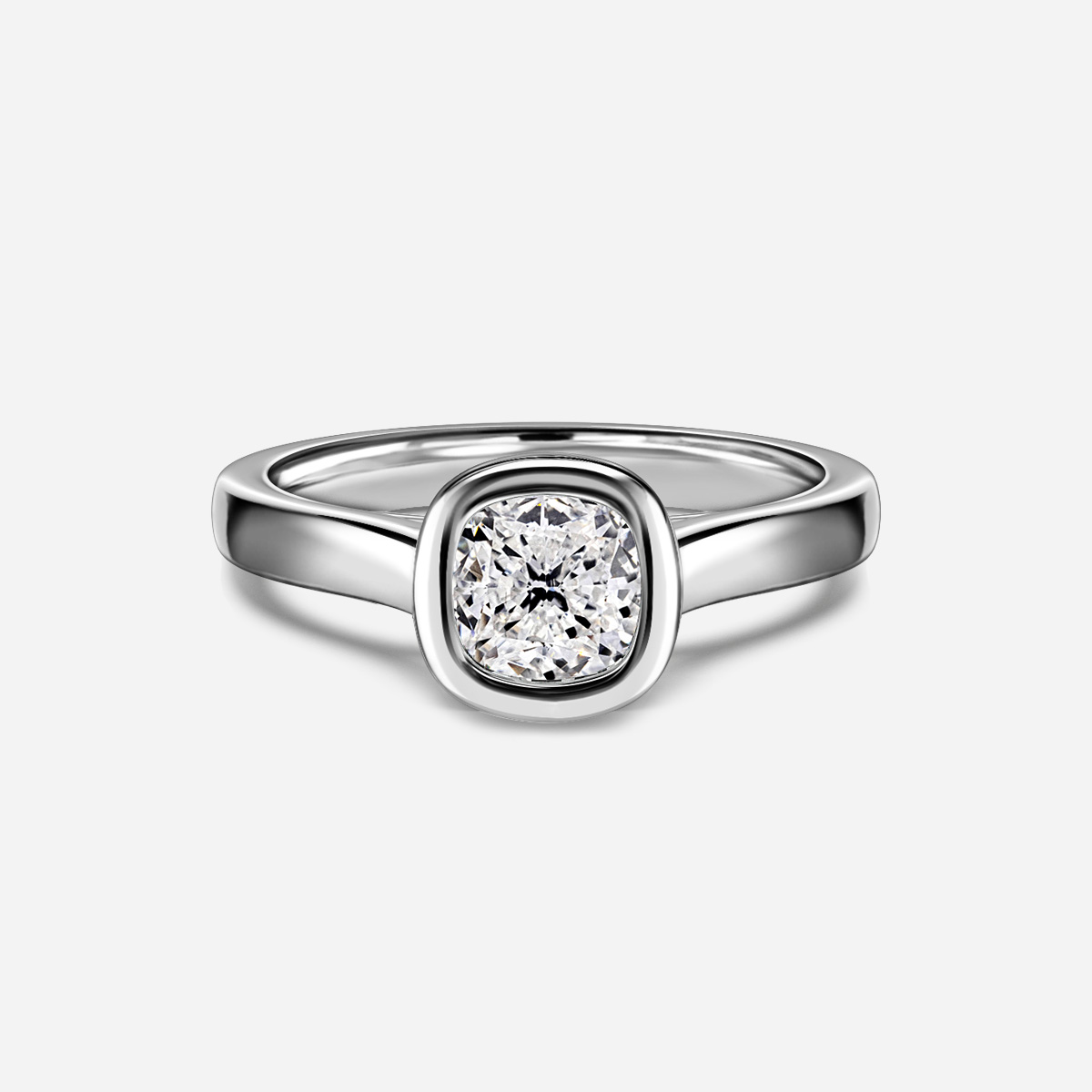 The Harper Platinum Bezel Set Engagement Ring features a sleek, modern design with a secure bezel setting that elegantly showcases the center diamond. Crafted in platinum, it offers a minimalist yet timeless appeal for lasting elegance. Handcrafted in Hatton Gardens, London. Centre Diamond Not Included Setting Only