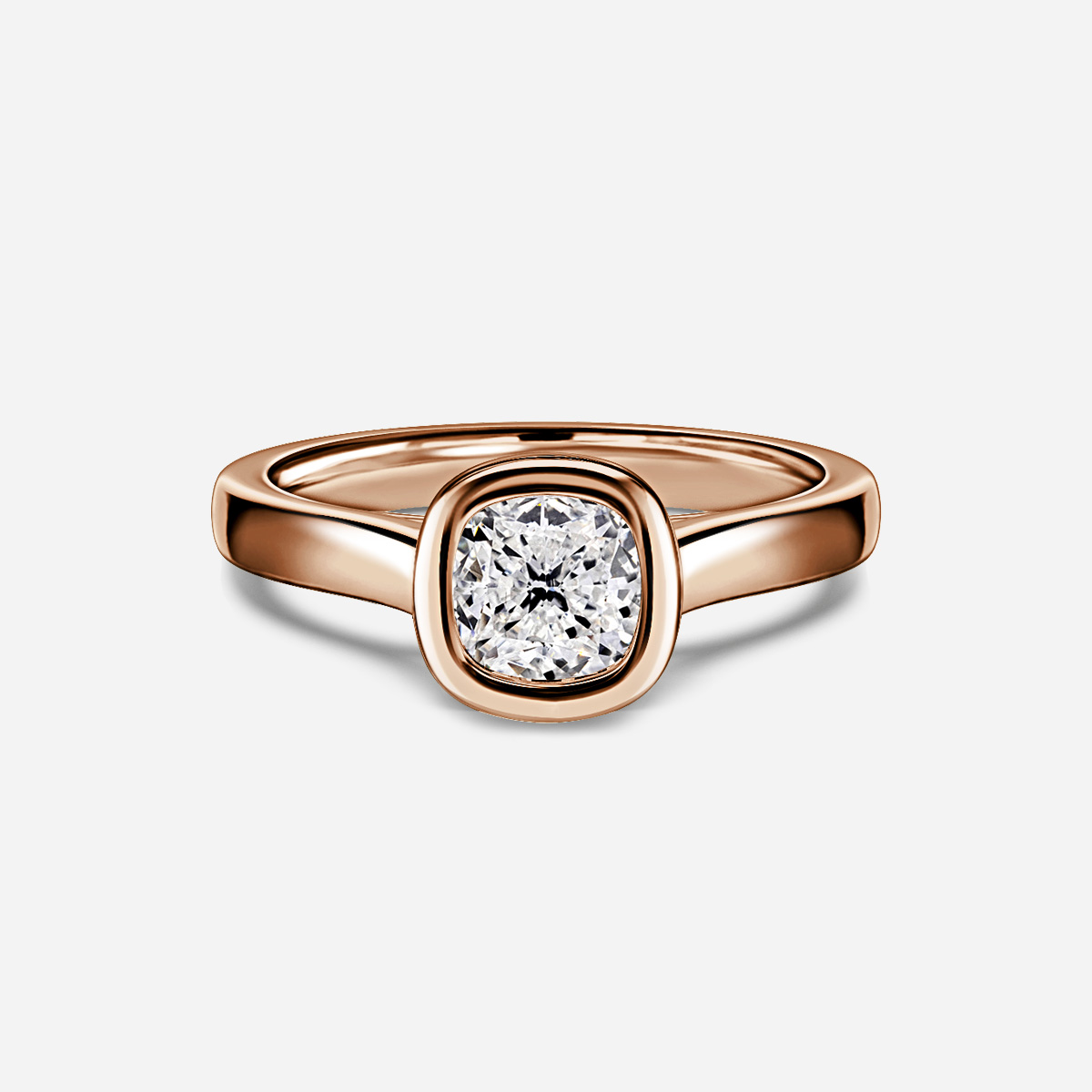 The Harper Rose Gold Bezel Set Engagement Ring features a sleek, modern design with a secure bezel setting that elegantly showcases the center diamond. Crafted in rose gold, it offers a minimalist yet timeless appeal for lasting elegance. Handcrafted in Hatton Gardens, London. Centre Diamond Not Included Setting Only